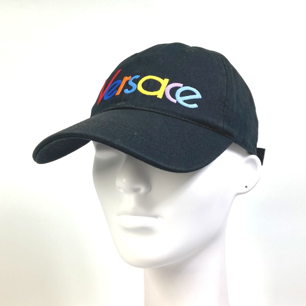 VERSACE レインボー ロゴ刺繍 ベースボール 帽子 キャップ帽 キャップ コットン メンズ ブラック
