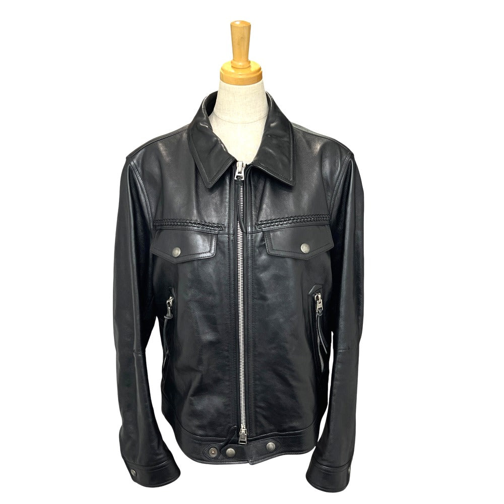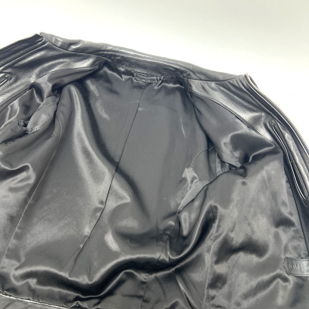 TOM FORD BY475 TFL856 編み込み ジップアップ ダウン アパレル ライダースジャケット レザー メンズ ブラック