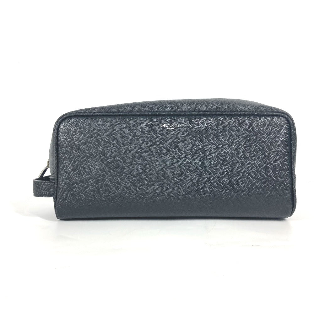 SAINT LAURENT PARIS 609347 ロゴ 持ち手つき グルーミングケース ポーチ カバン セカンドバッグ レザー メンズ ブラック