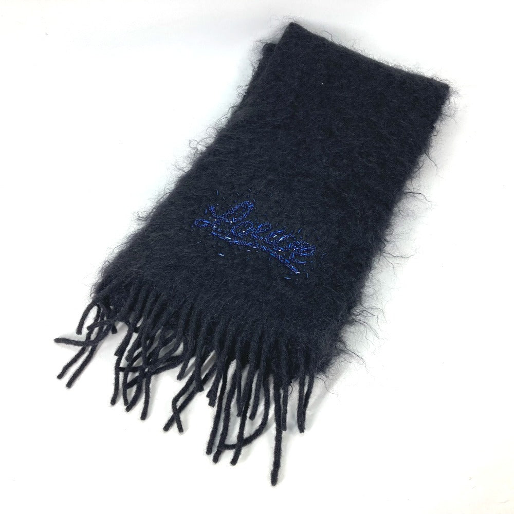 LOEWE ビーズ刺繍 ロゴ フリンジ マフラー モヘア レディース ブラック