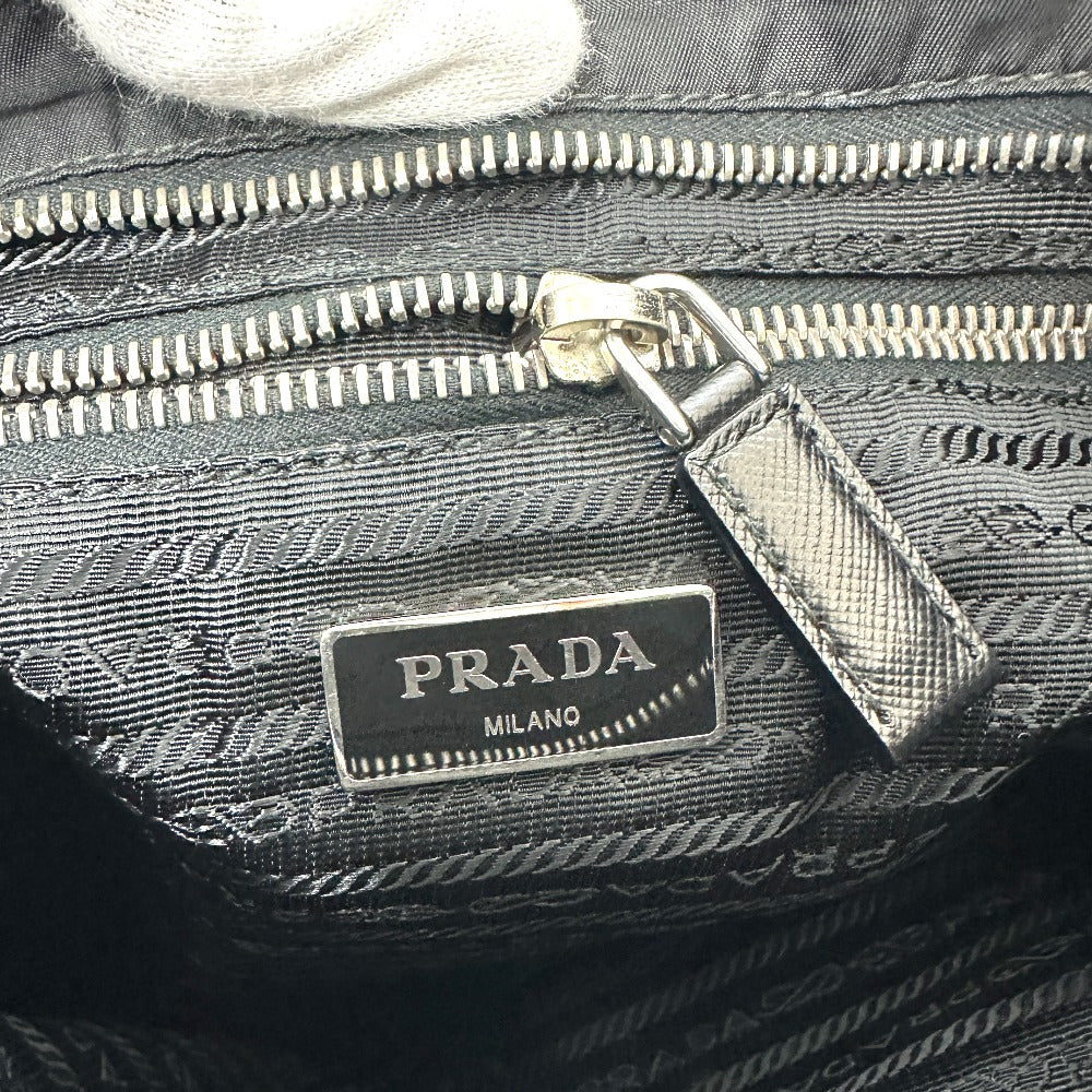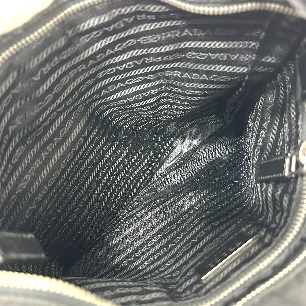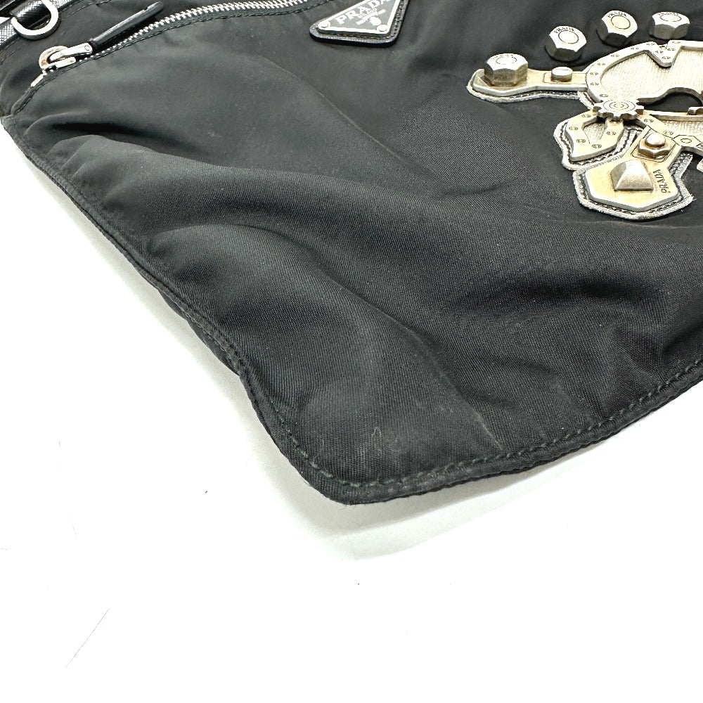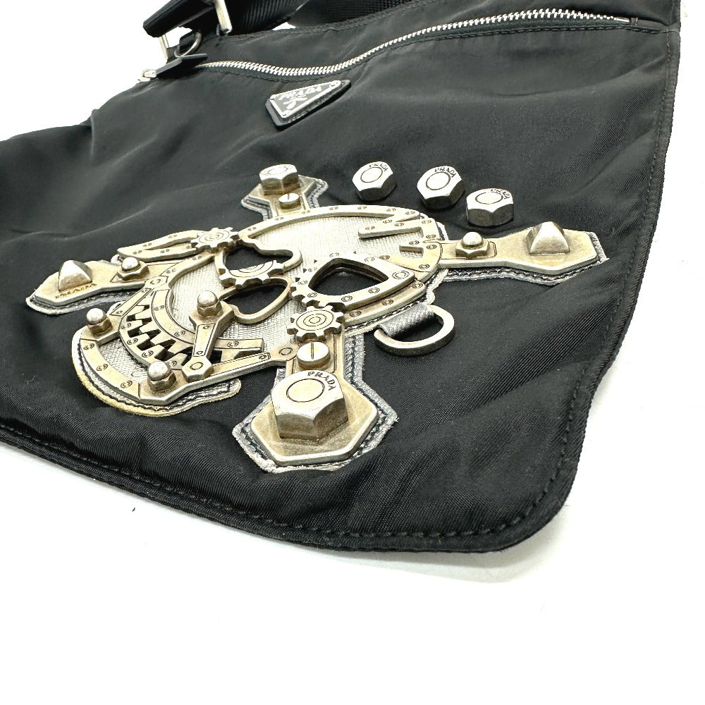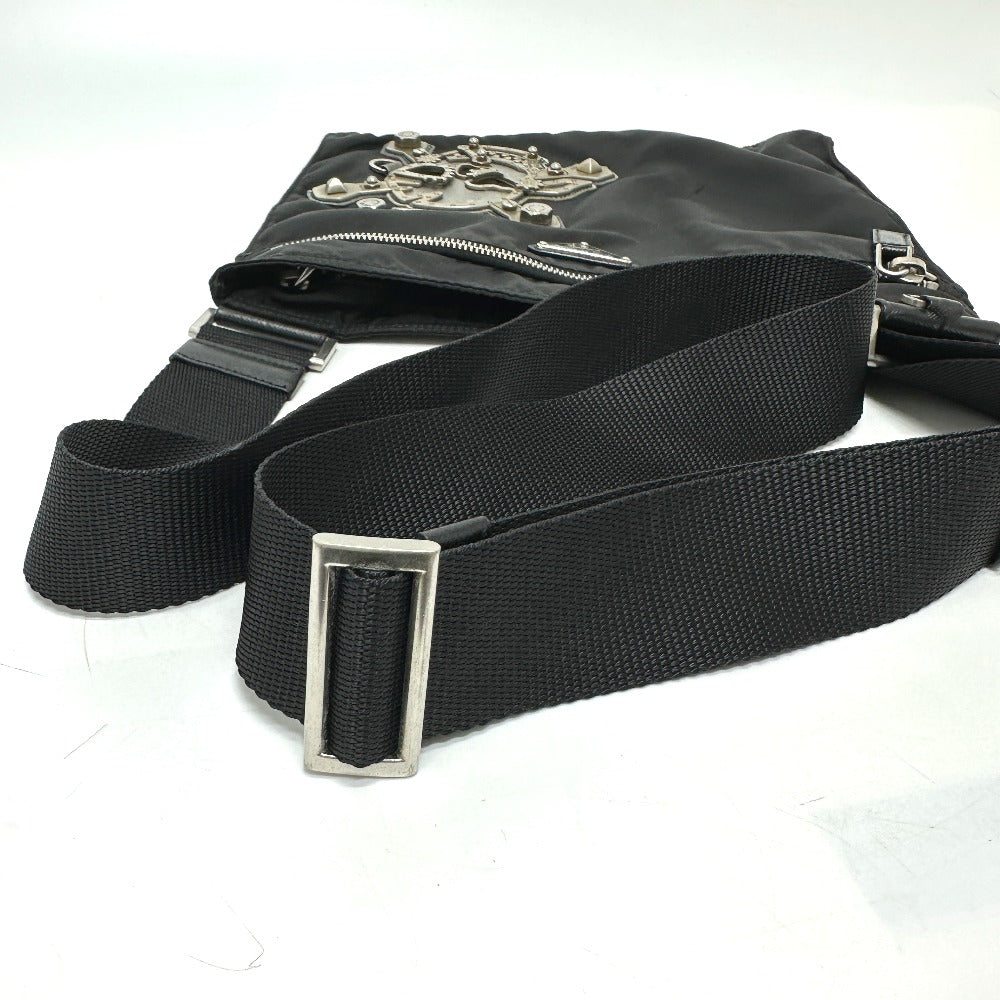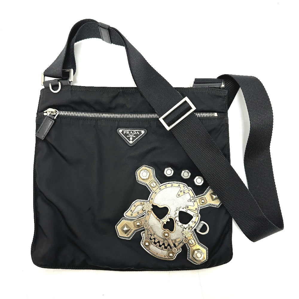 PRADA VA0859 トライアングルプレート スカル フラット カバン 肩掛け ショルダーバッグ ナイロン レディース ブラック