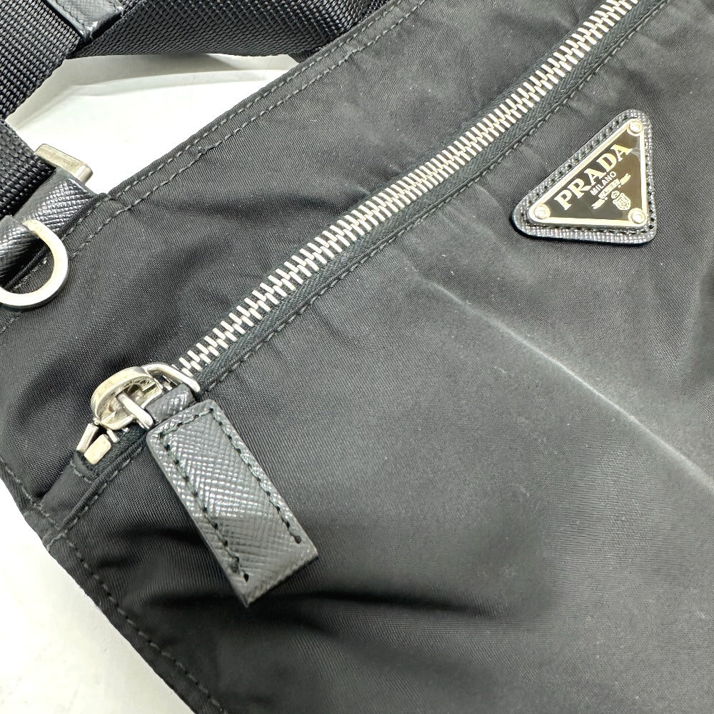 PRADA トライアングルプレート フラット カバン バッグ ショルダー ショルダーバッグ ナイロン ユニセックス ブラック