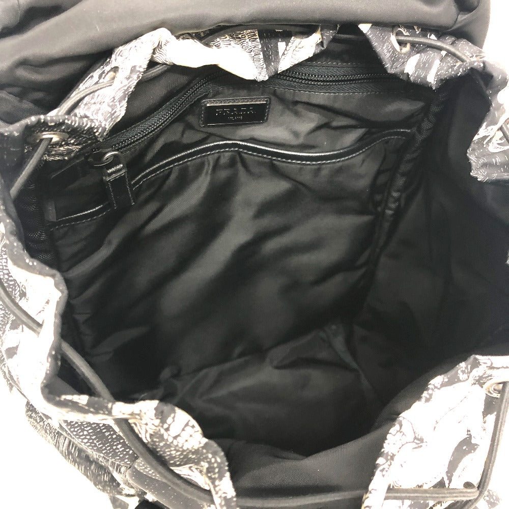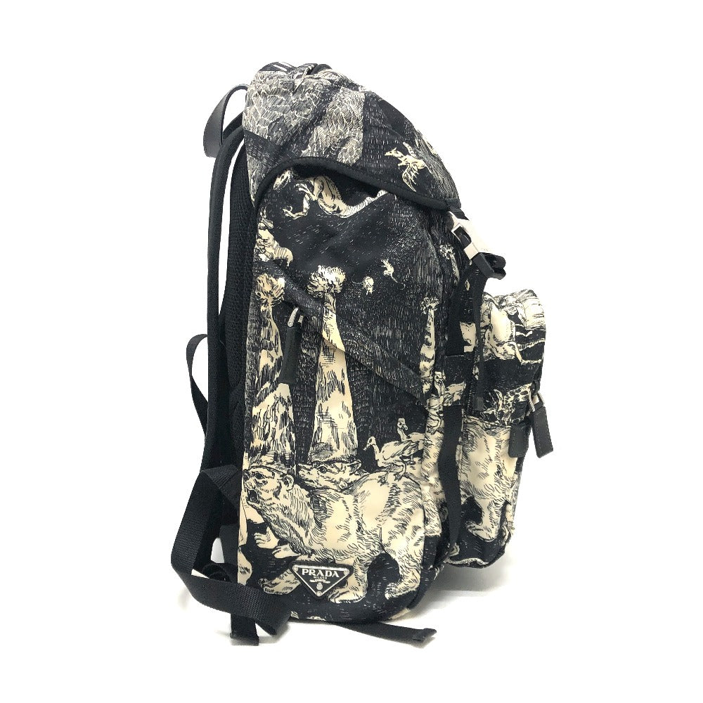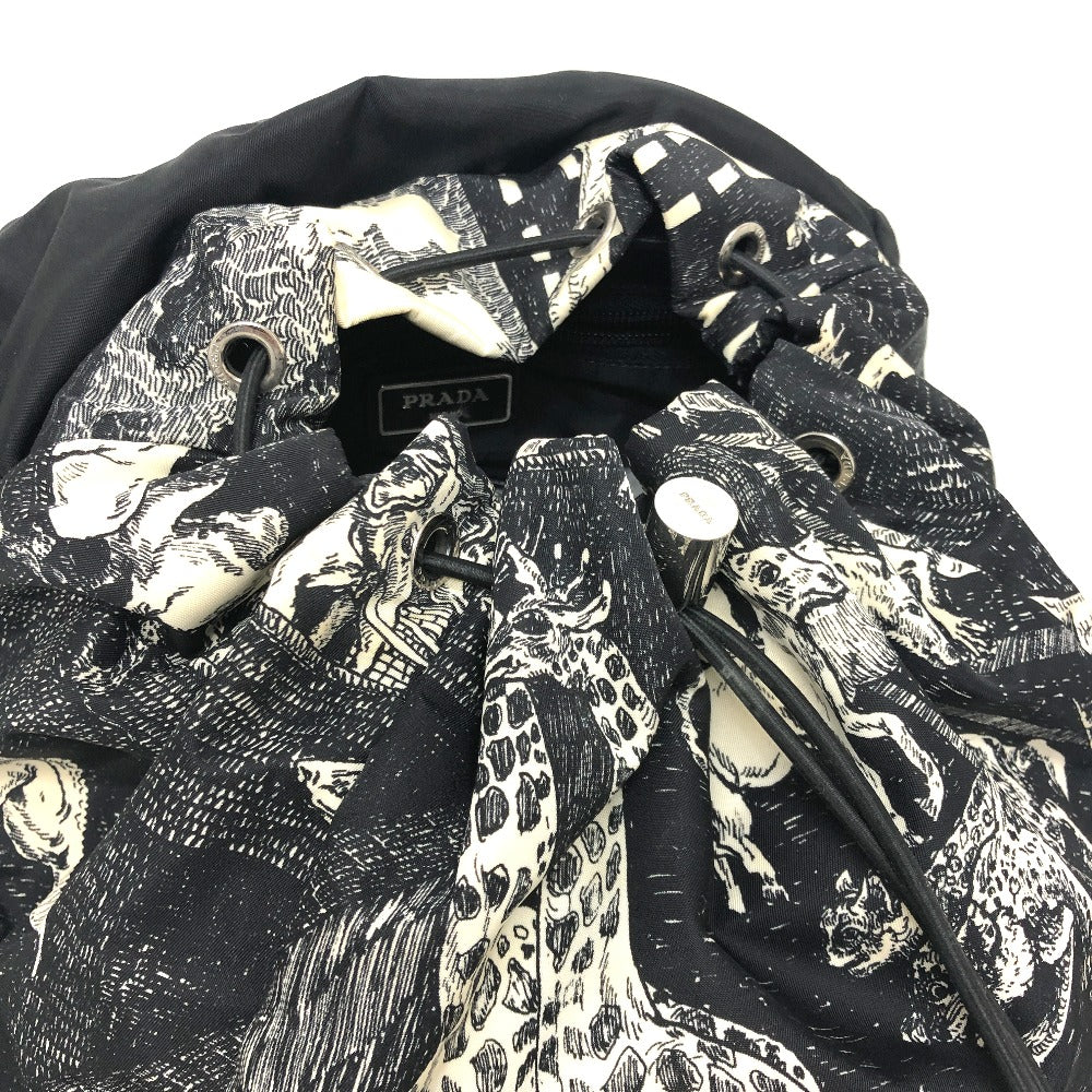 PRADA 2VZ135 アニマル総柄 バックパック カバン バッグ リュックサック ナイロン ユニセックス ブラック