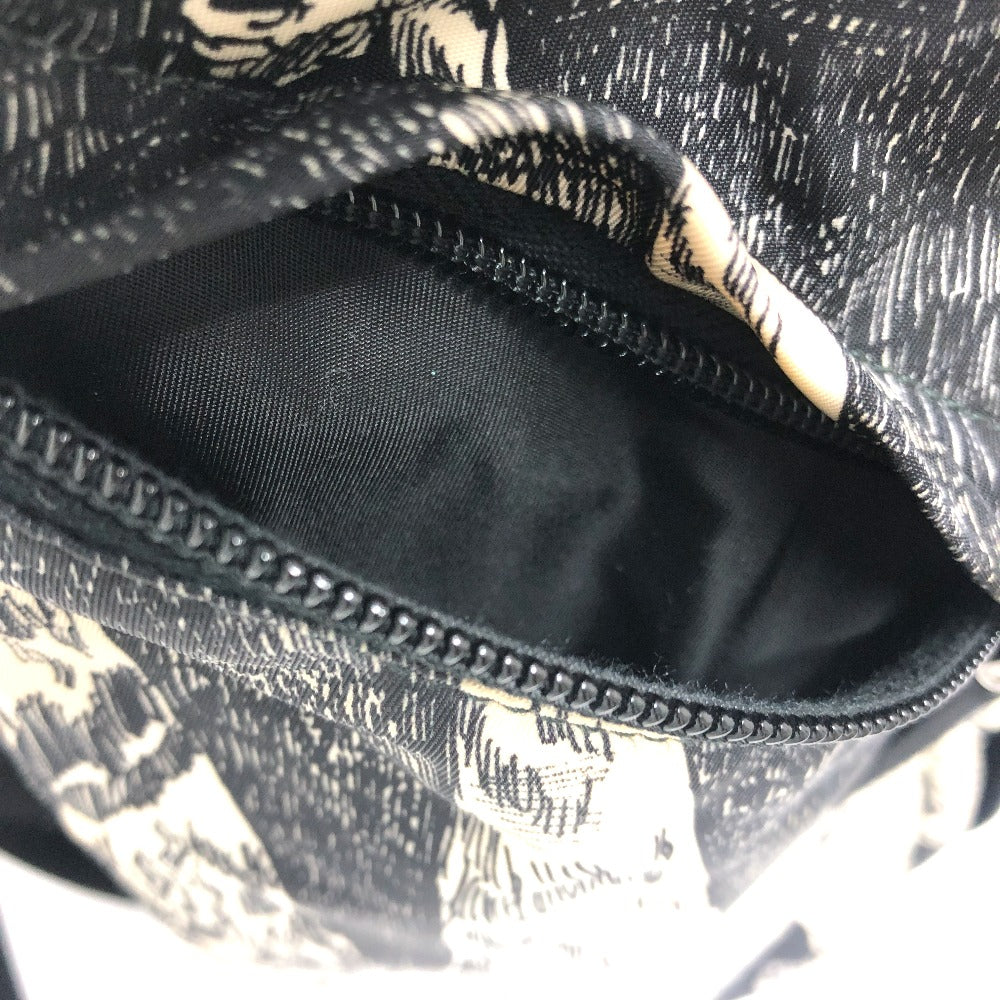 開閉:巾着式 外側: ファスナーポケット x 3 内側: オープンポケット x 1、ファスナーポケット x 1 |