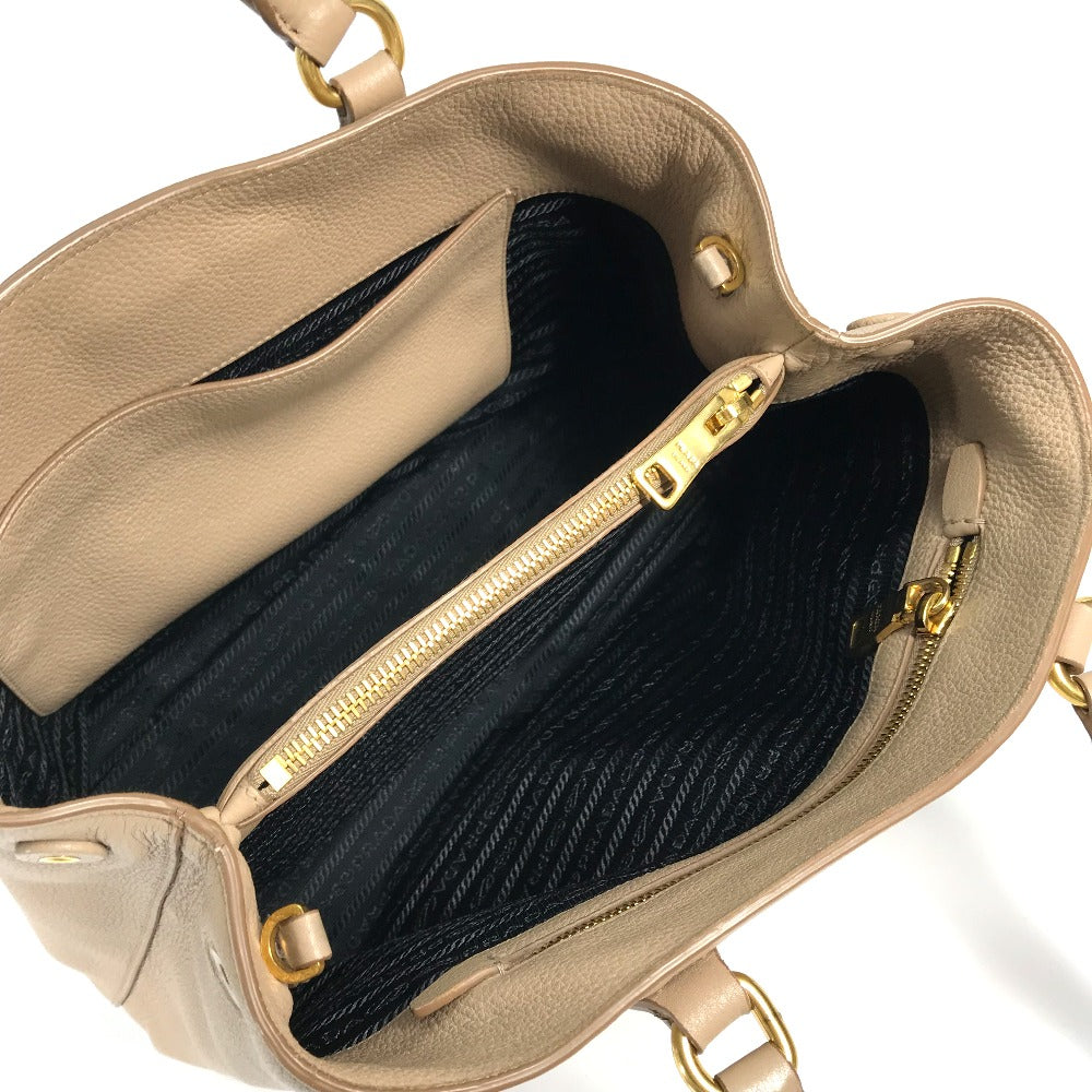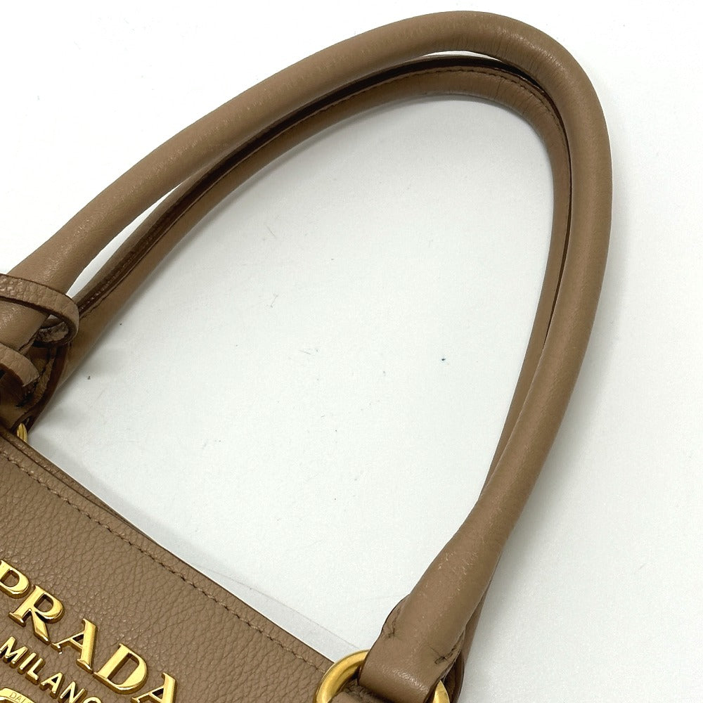 PRADA 1BA058 ロゴ 肩掛け 斜め掛け 2WAYバッグ ショルダーバッグ トートバッグ ハンドバッグ レザー レディース ベージュ