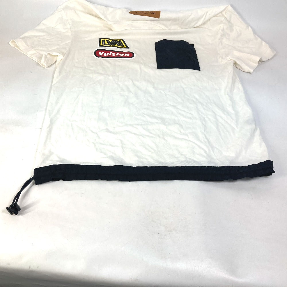 | 商品説明 | 今コレクションを象徴する「砂漠のバイクレース」のテーマを再解釈した、クラシカルなホワイトのTシャツ。レーシングチームのロゴ風にアレンジした「LVM」と「Vuitton」のシグネチャーをプリントしました。胸元にブラックのナイロンポケットを、裾には調節可能なナイロンのドローストリングを添えた、日常の装いにスポーティなひねりを加えるアイテムです。 |