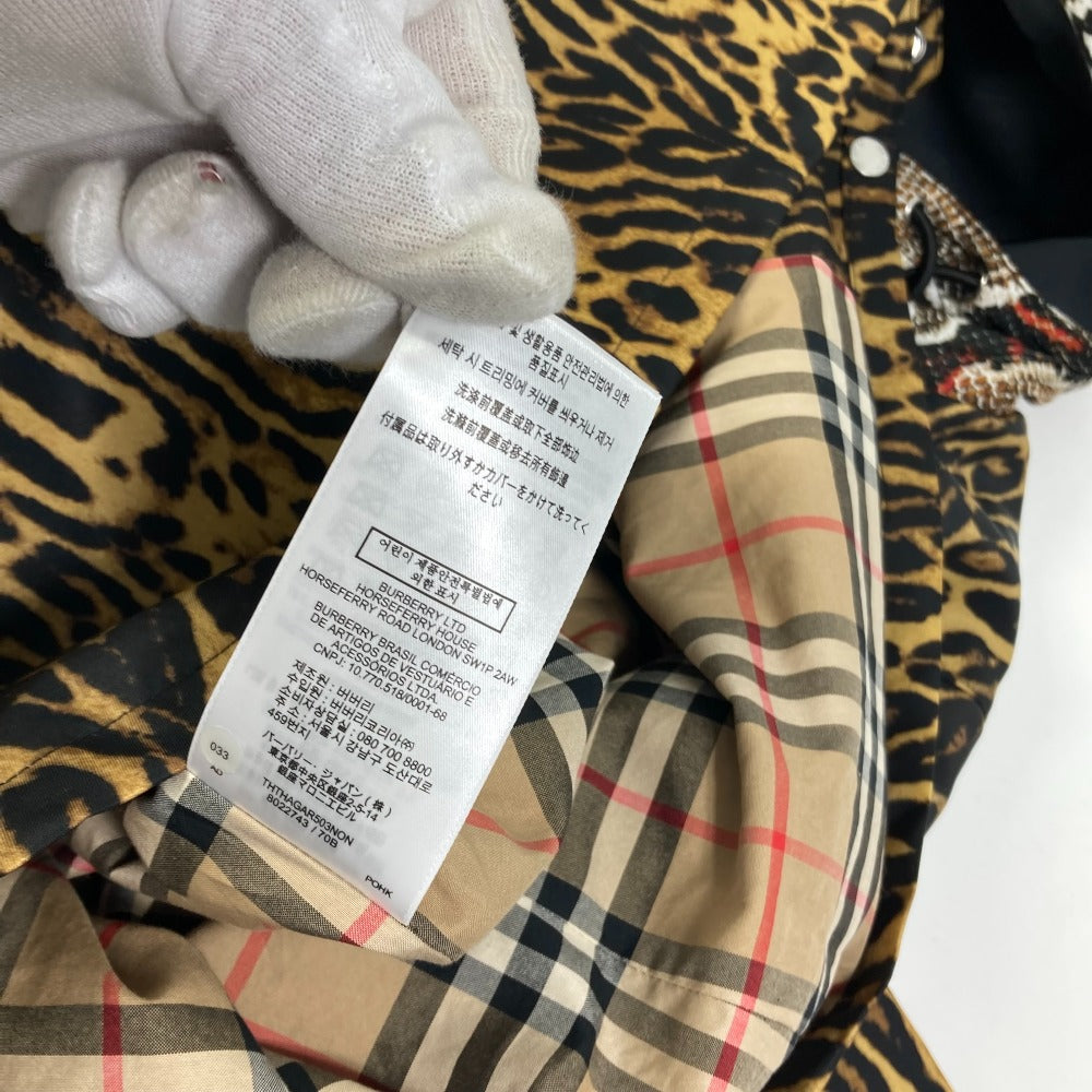 BURBERRY 8022743 チェック ブルゾン レオパード 豹 ヒョウ フード付き ジャンバー アウター コート 長袖 ロングコート ポリアミド レディース