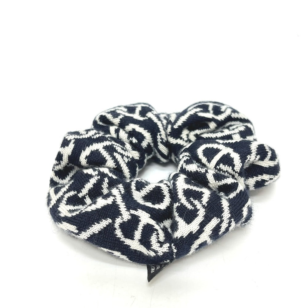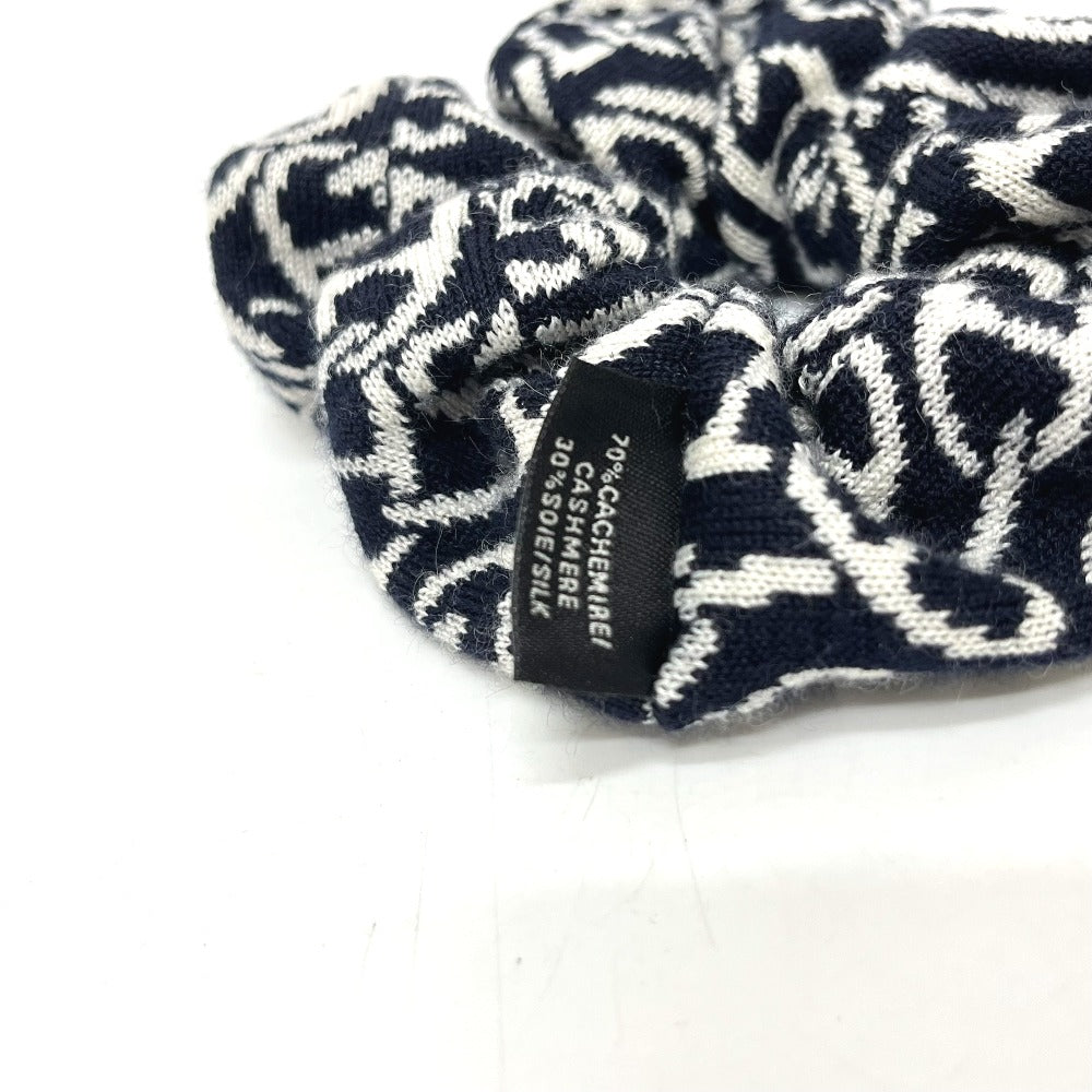 HERMES クラウディア シェーヌダンクル柄 ヘアアクセサリー シュシュ カシミヤ レディース ブラック