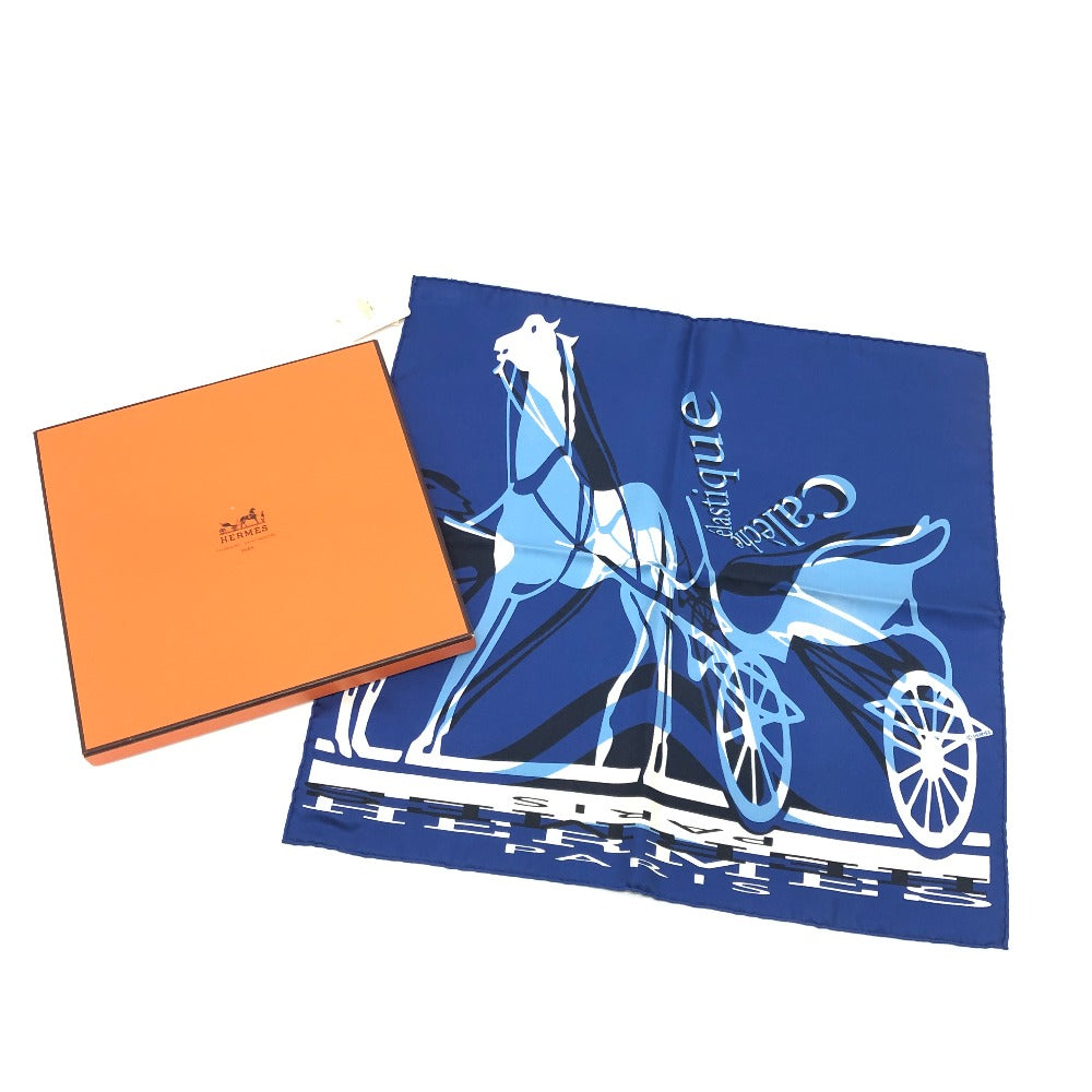 HERMES Carré 40 Caleche Elastic Fashion Accessory Silk Scarf Women's Blue