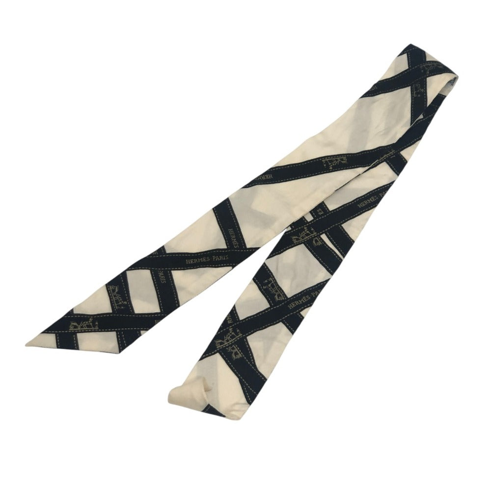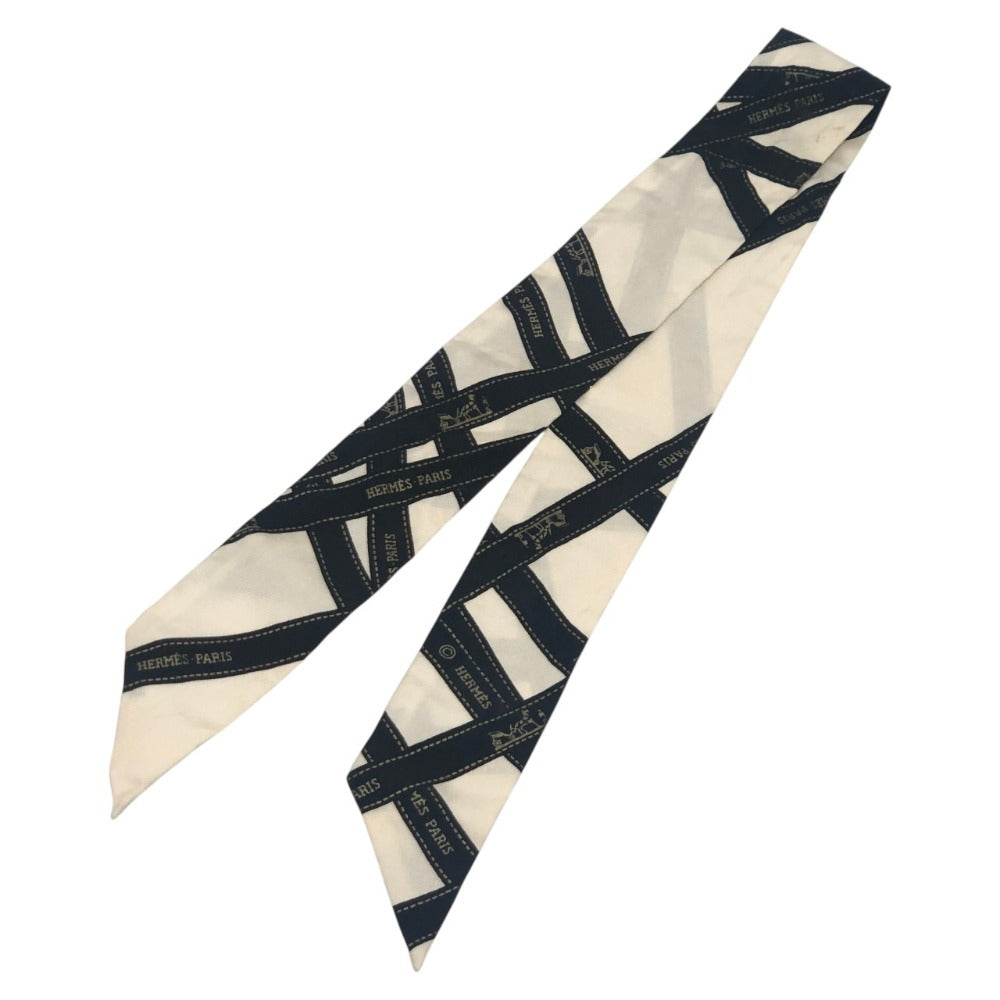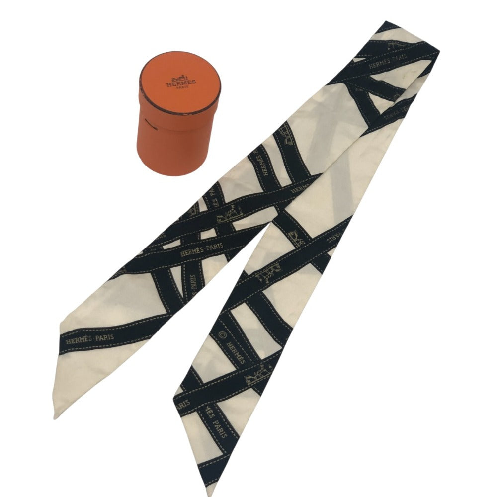 HERMES ツイリー BOLDUC AU CARRE ボルデュックリボン ファッション小物 リボン柄 バンドスカーフ スカーフ シルク レディース ホワイト
