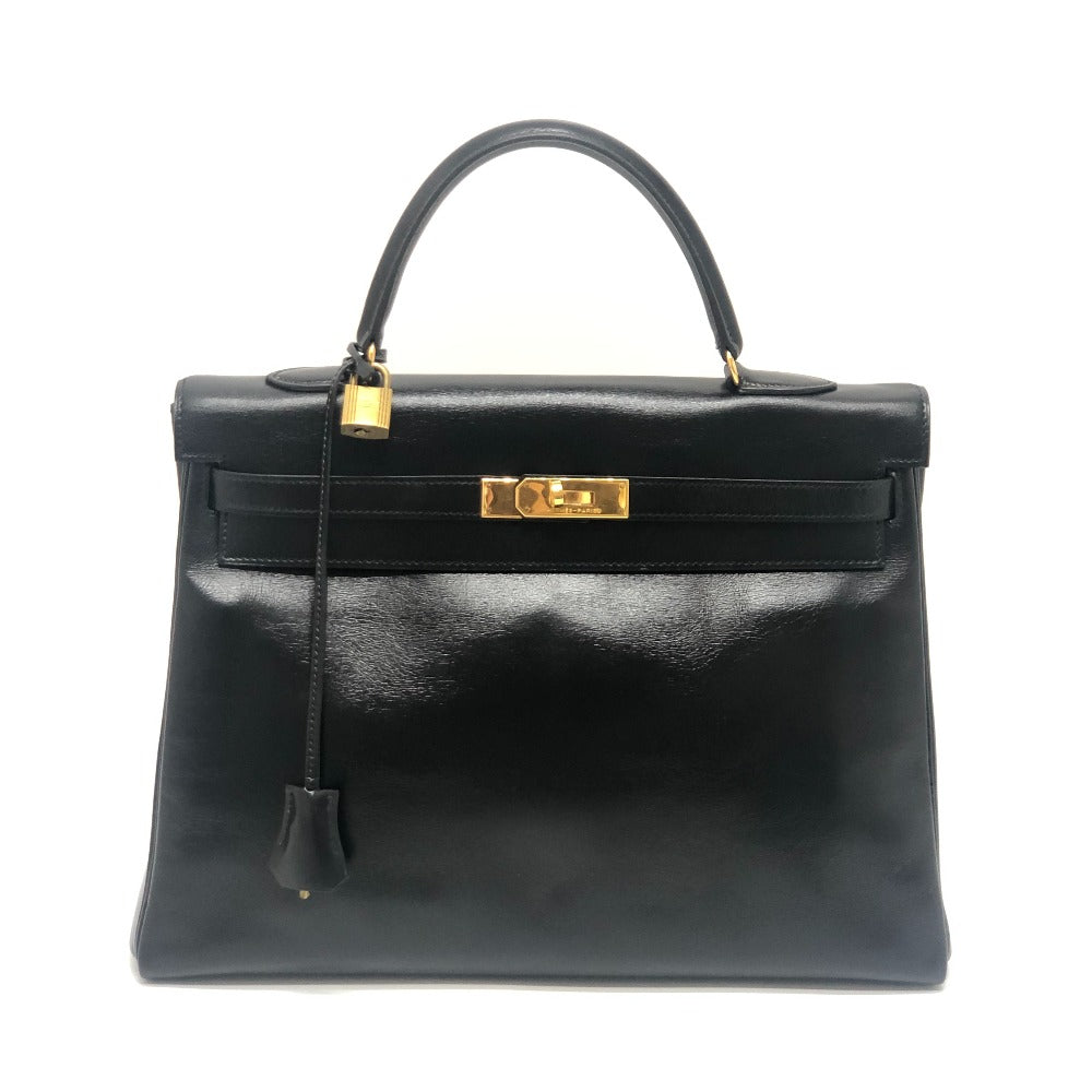 HERMES ケリー35 ケリー 35 内縫い カバン ゴールド金具 ハンドバッグ ボックスカーフ レディース ブラック