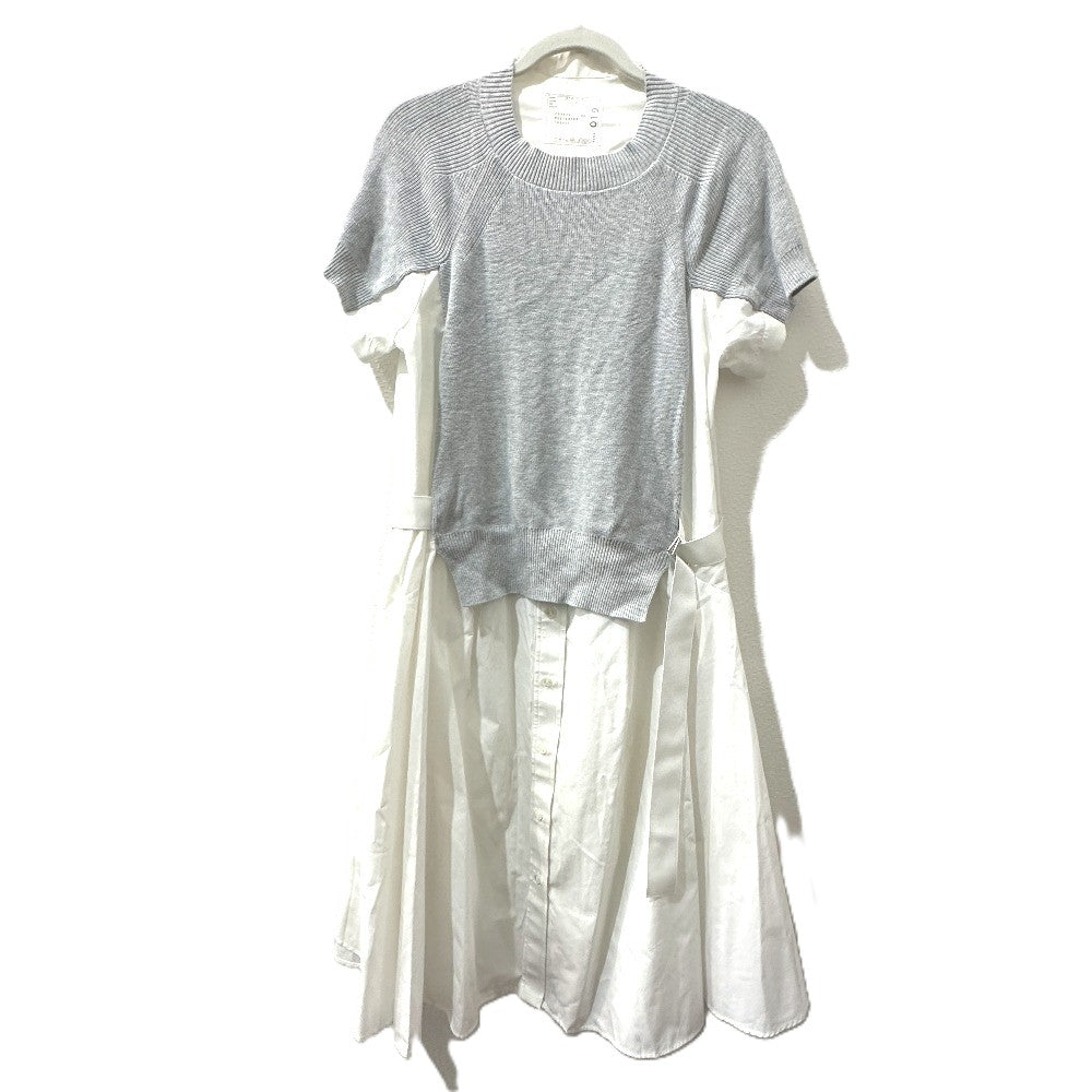Sacai SCW-019 アパレル 服 半袖 ニットドッキングワンピース フレア ワンピース コットン レディース ホワイト