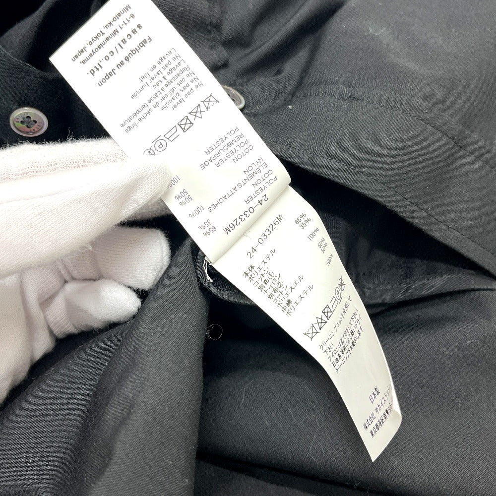 Sacai 24-03326M Spring/Summer 2024 Cotton Oxford Nylon Twill Shirt, Men's Long Sleeve Shirt, Black