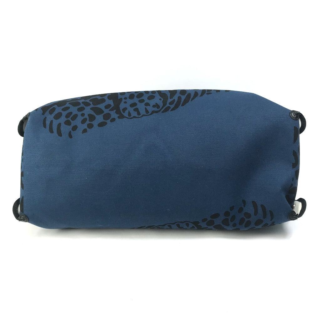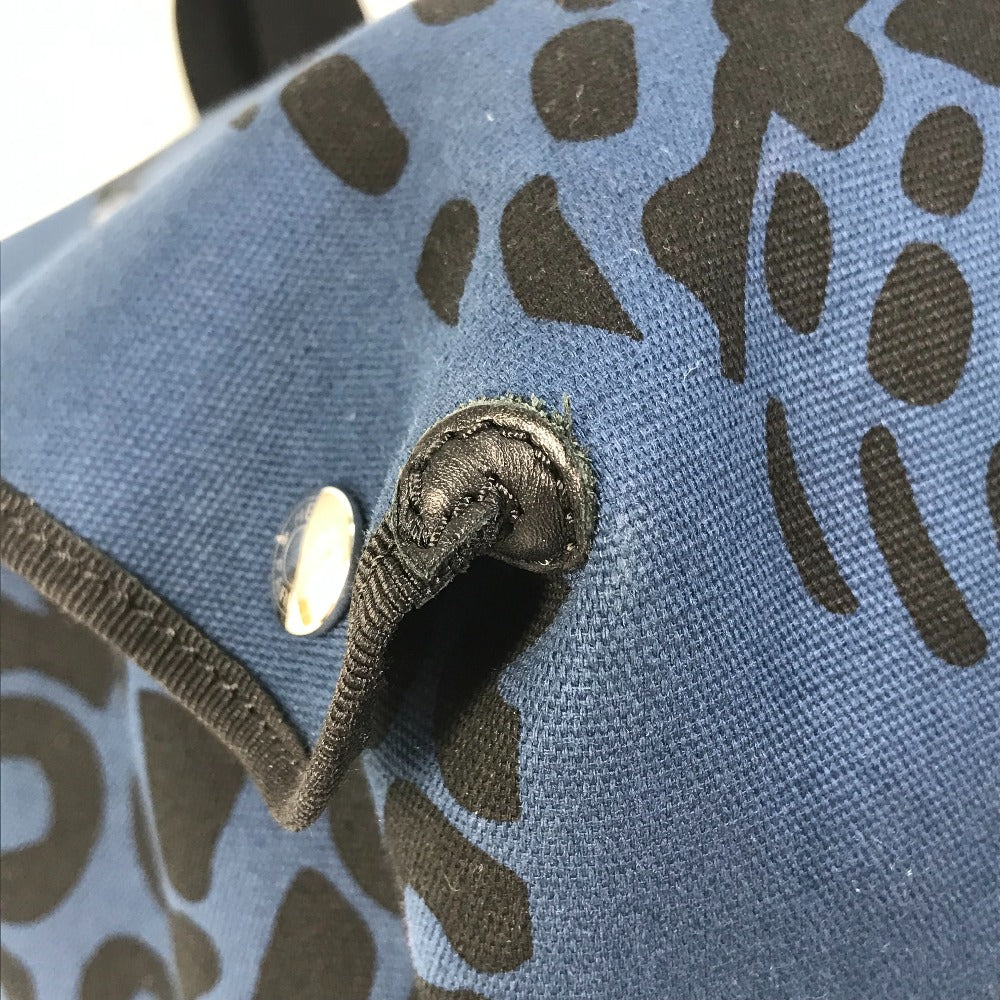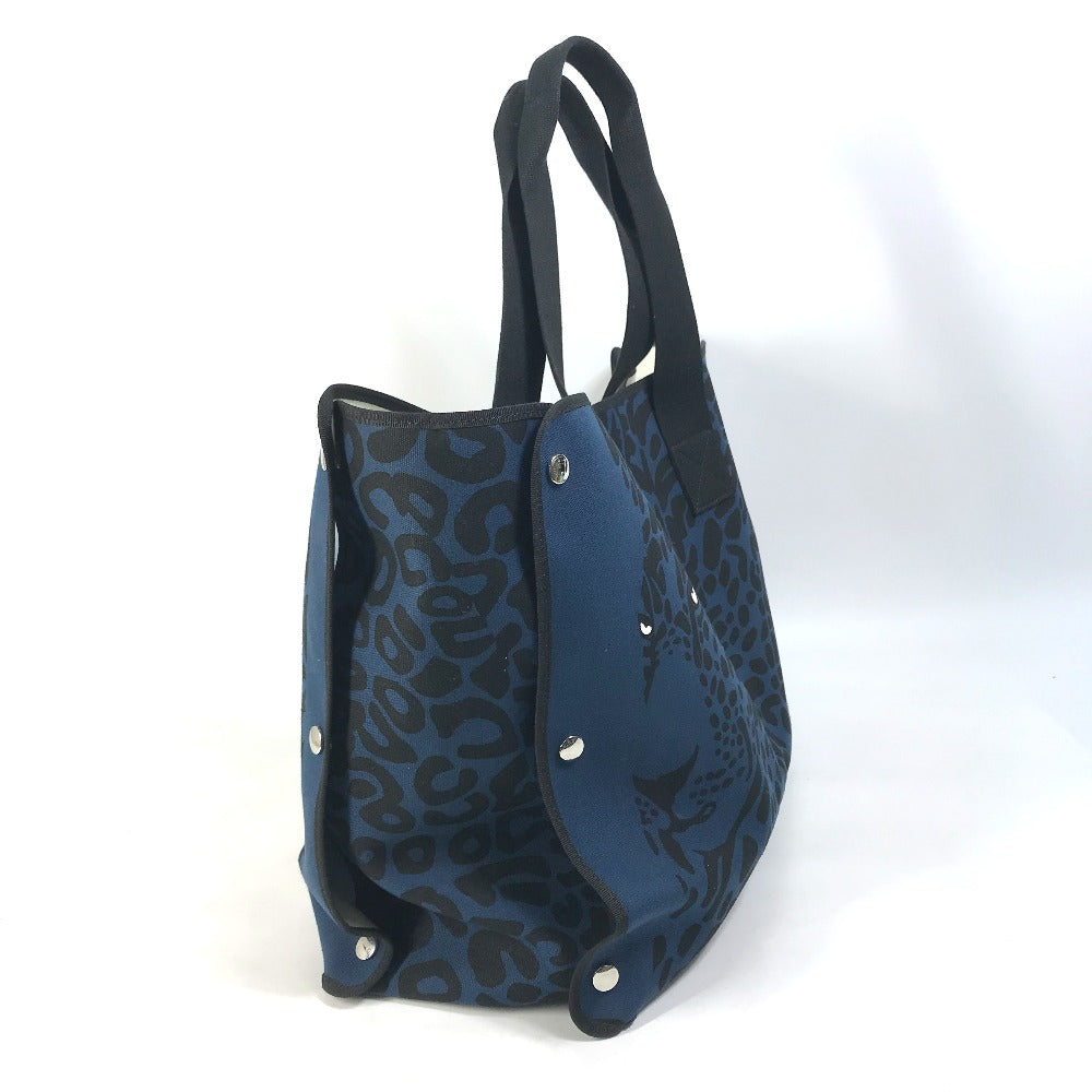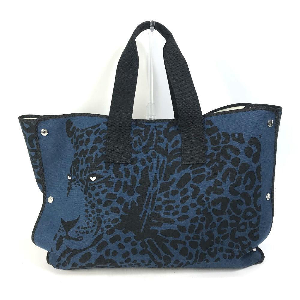 HERMES ショルダーバッグ 肩掛け レオパード ヒョウ 豹 ビーチバッグ トートバッグ キャンバス レディース ネイビー