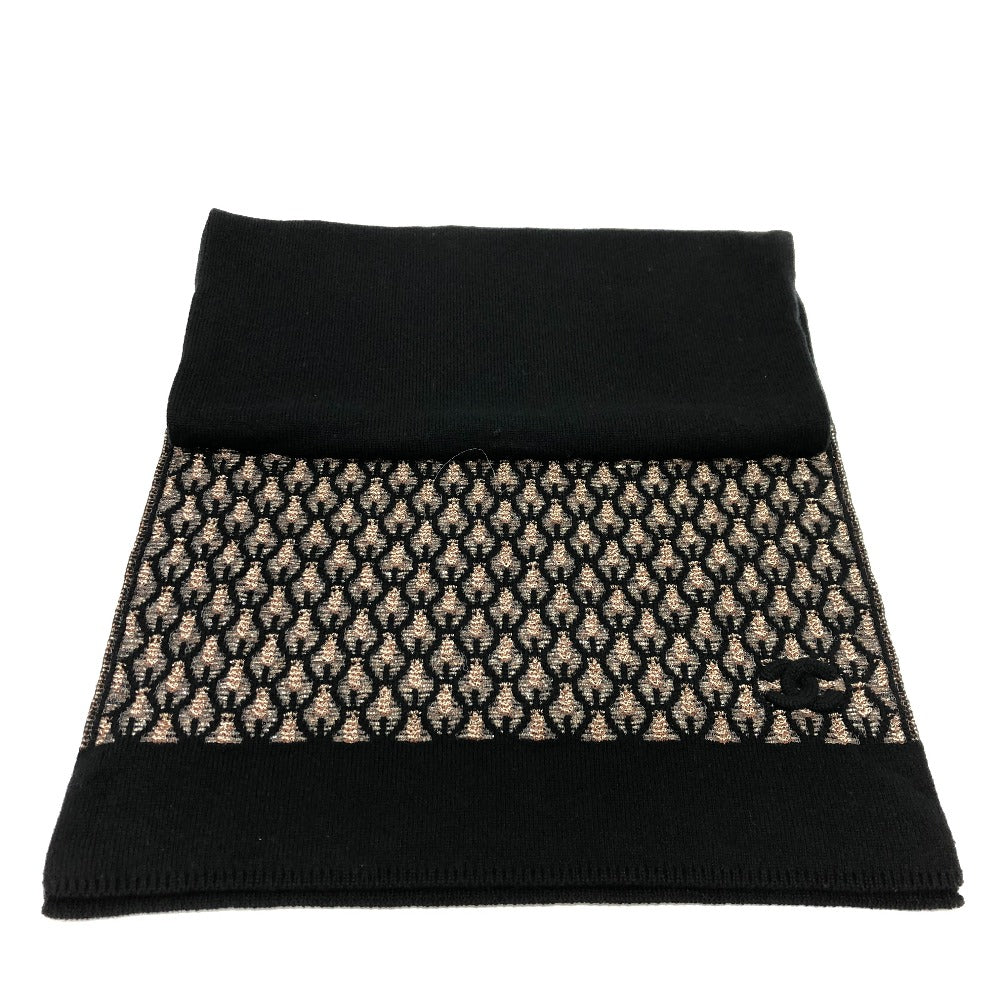 CHANEL 総柄 ココマーク アパレル小物 マフラー カシミヤ レディース ブラック