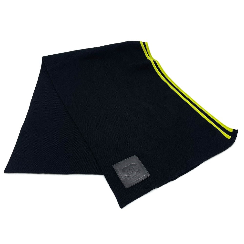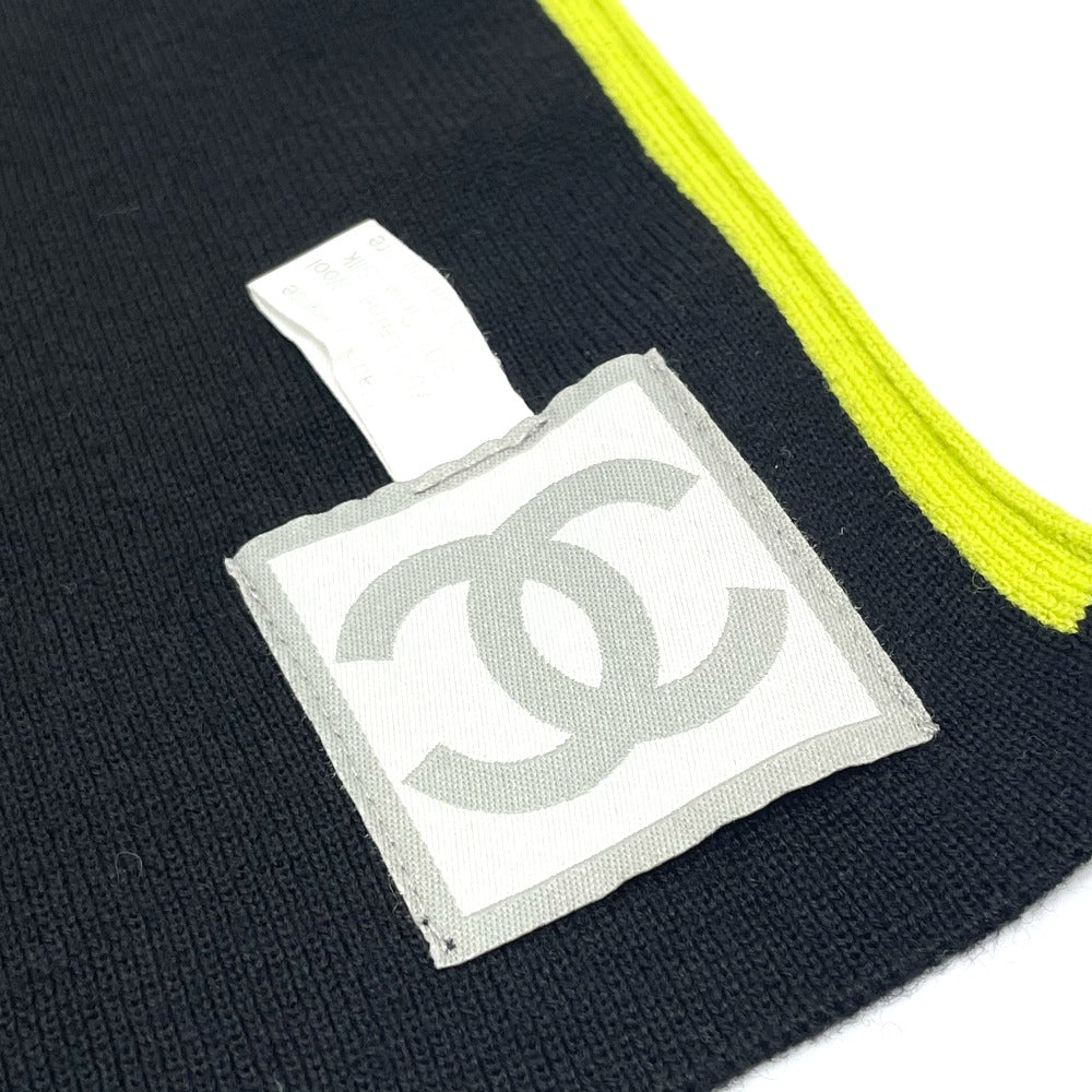 CHANEL スポーツ CC ココマーク マフラー ウール/カシミヤ ユニセックス ブラック×蛍光グリーン