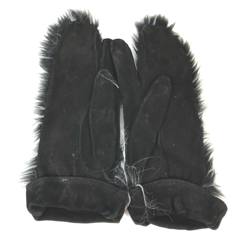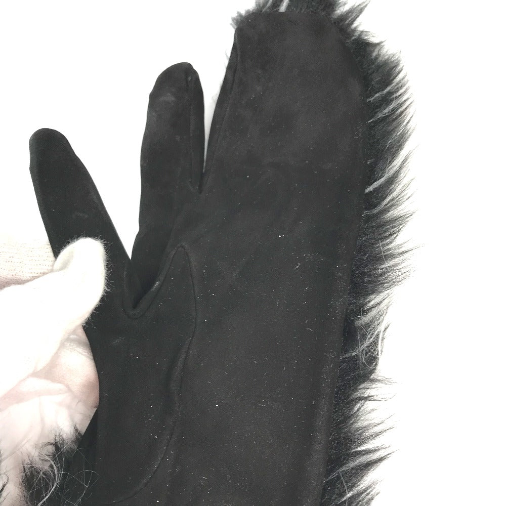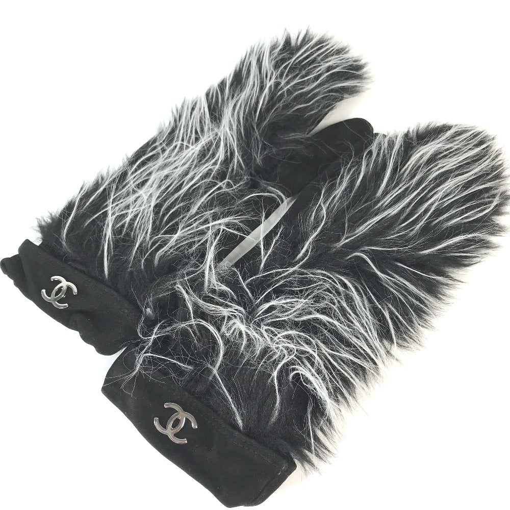 CHANEL ミトン型 CC ココマーク ファー 手袋 グローブ ヌバック レディース