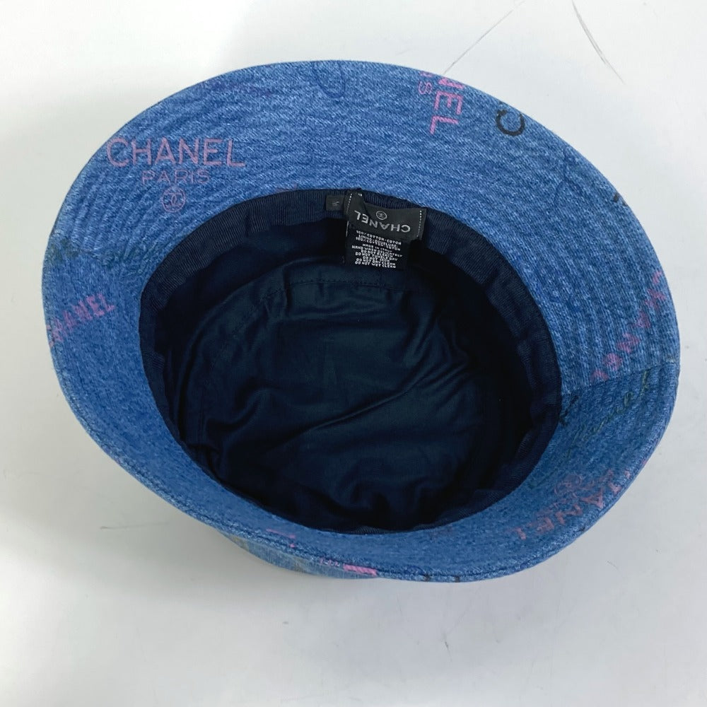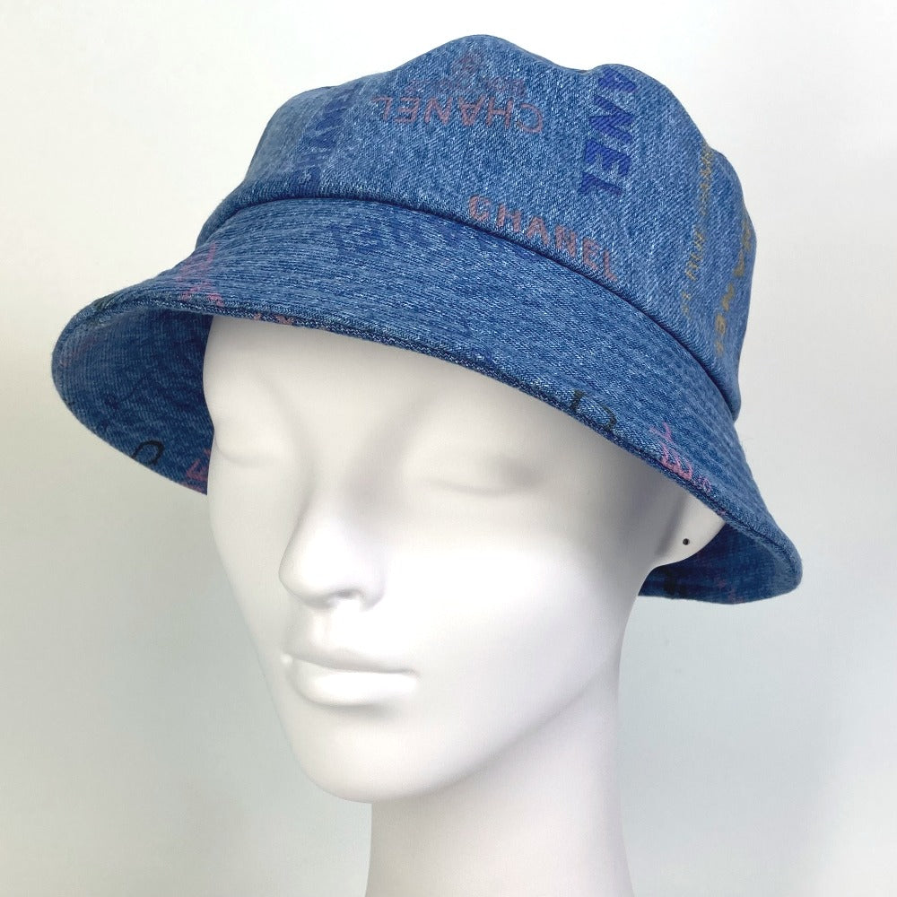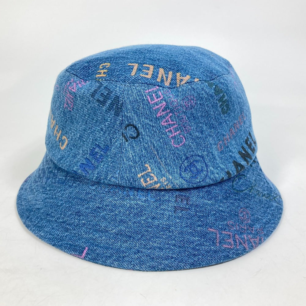 CHANEL 総柄ロゴ デニムクラッシャーハット バケットハット 22S ハット デニム レディース
