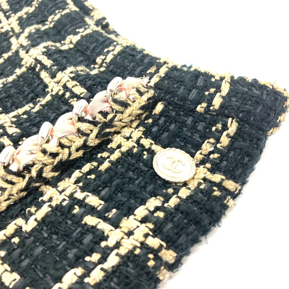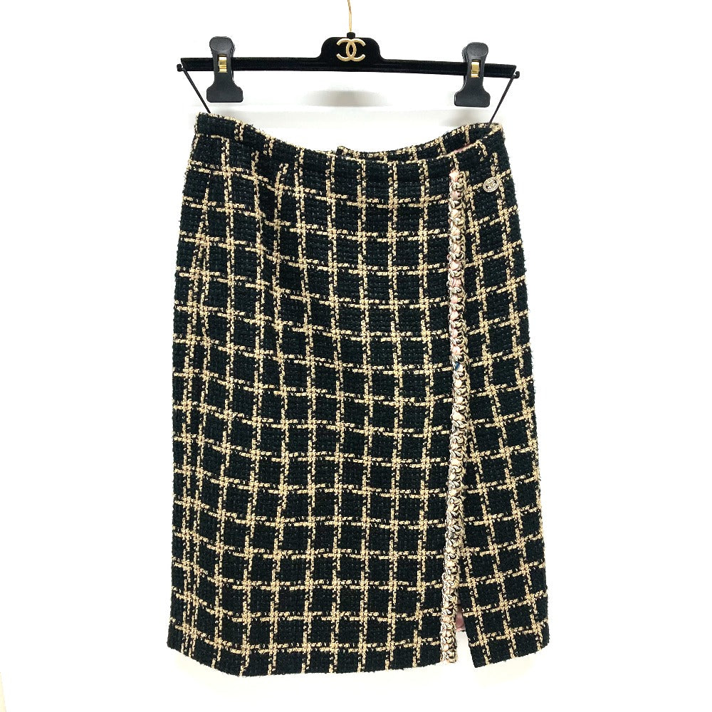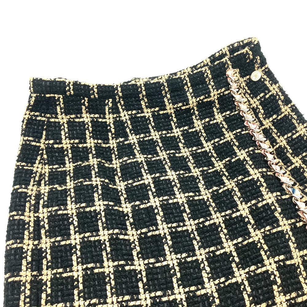 CHANEL P70539 チェック ツイード チェーン 21SS スカート シルク レディース