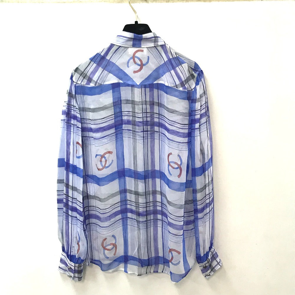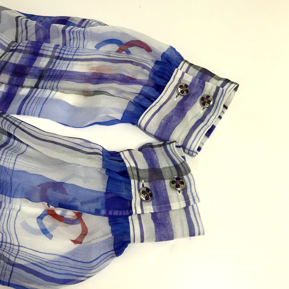 CHANEL P74508 CC ココマーク プリント モスリン トップス アパレル カットソー 長袖 ブラウス シルク レディース