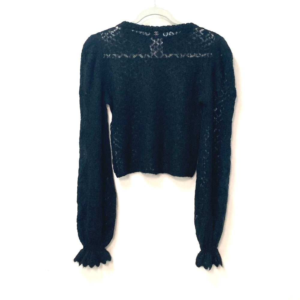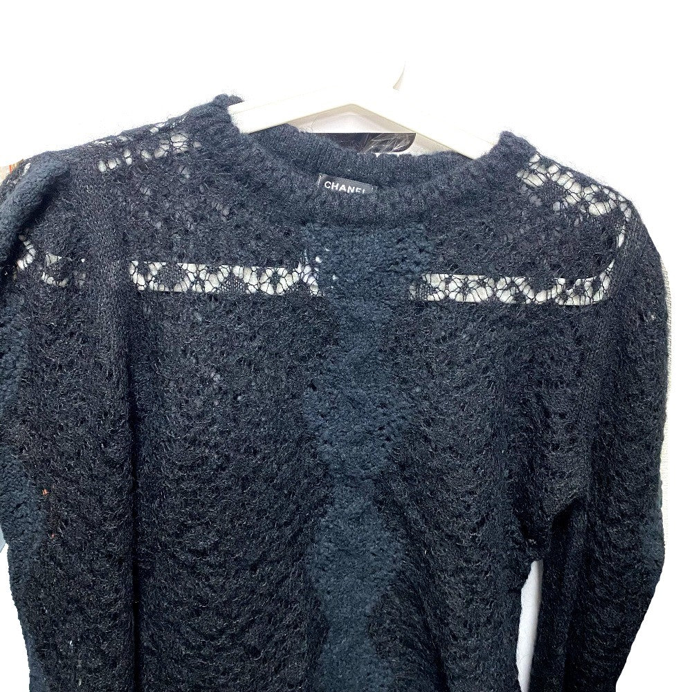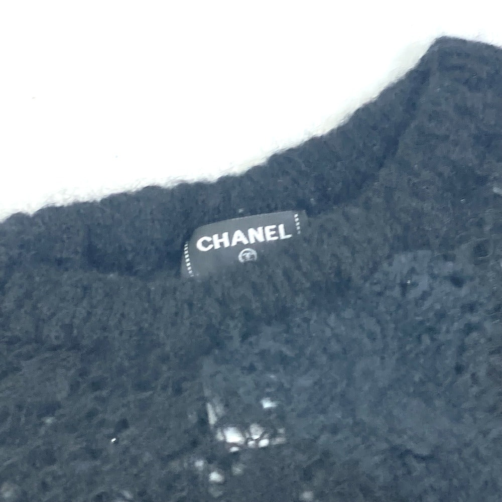 CHANEL P75692 CC ココマーク レース ラインストーン セーター 長袖 アパレル トップス ニット アルパカ レディース ブラック