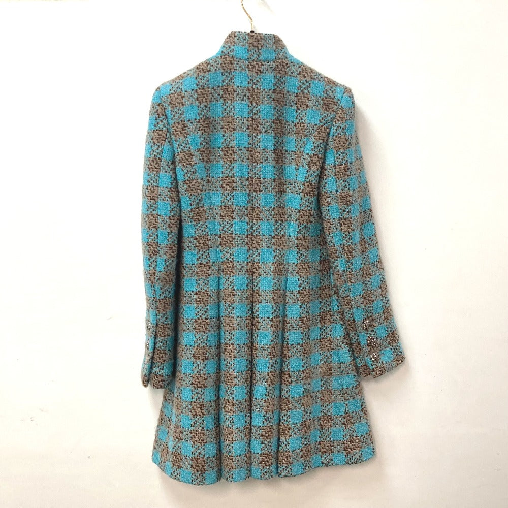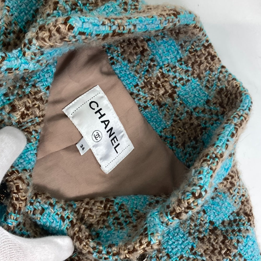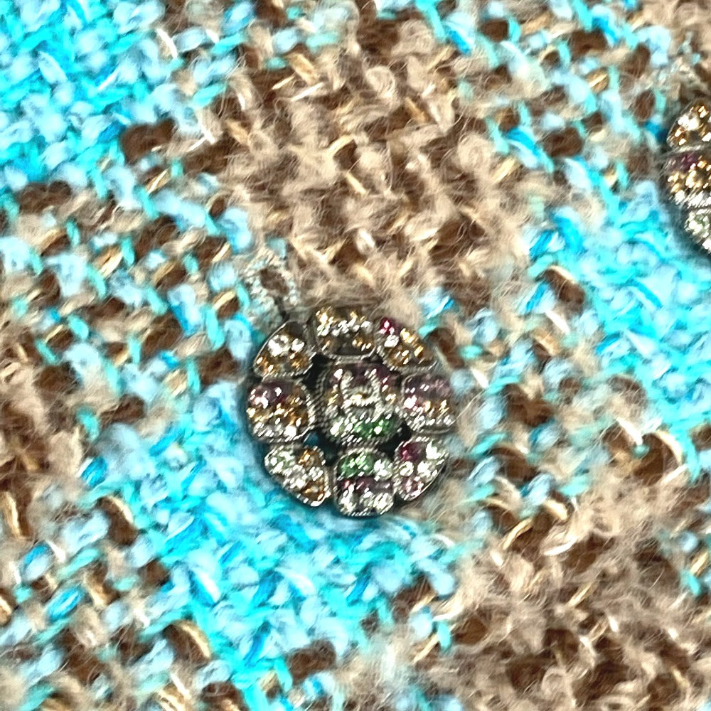 CHANEL P73646 ココマーク CC ビジュー ラインストーン ボタン ミックスツイード 22K アパレル 22K ロングコート ウール レディース ブルー系