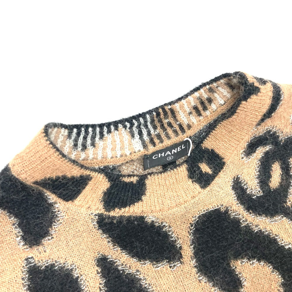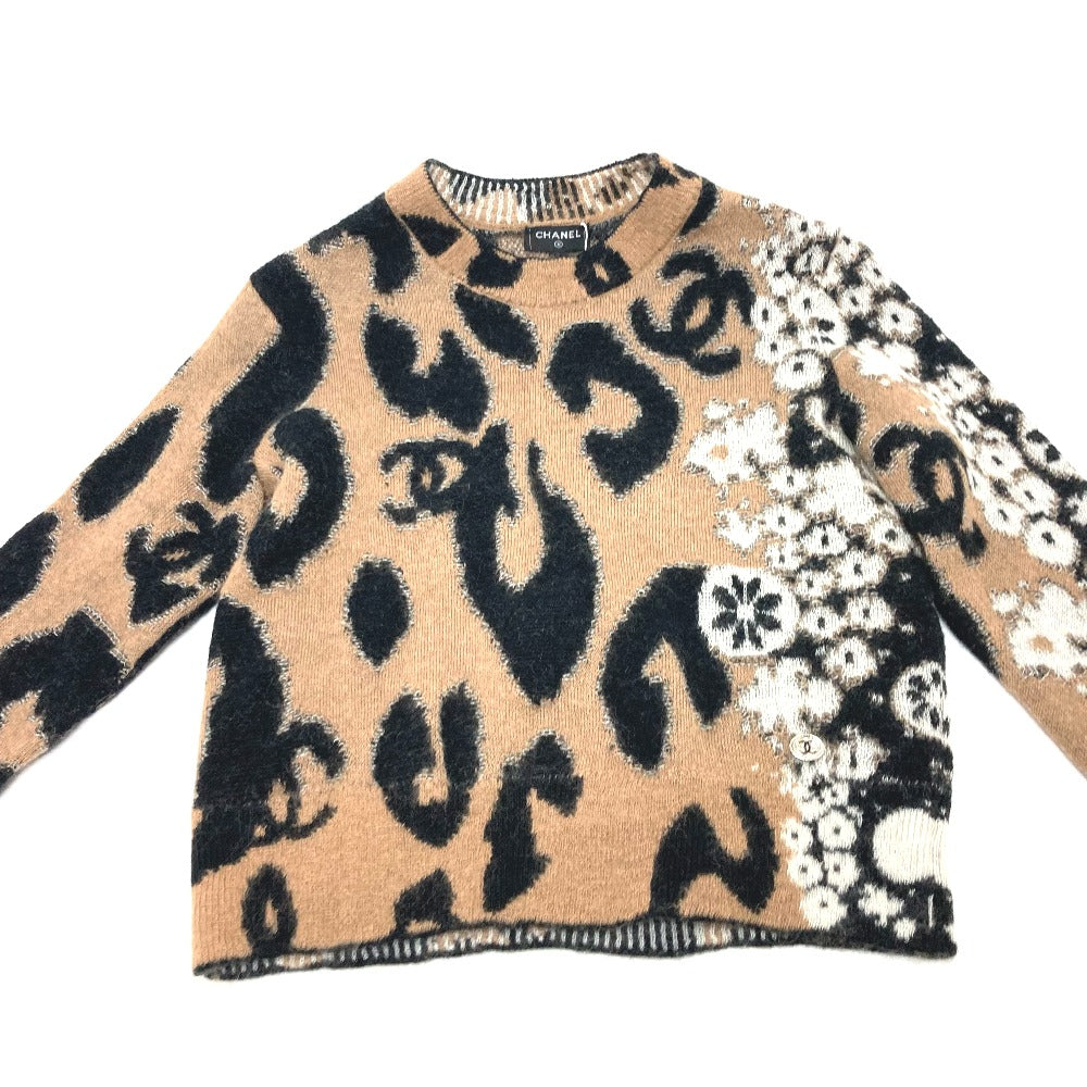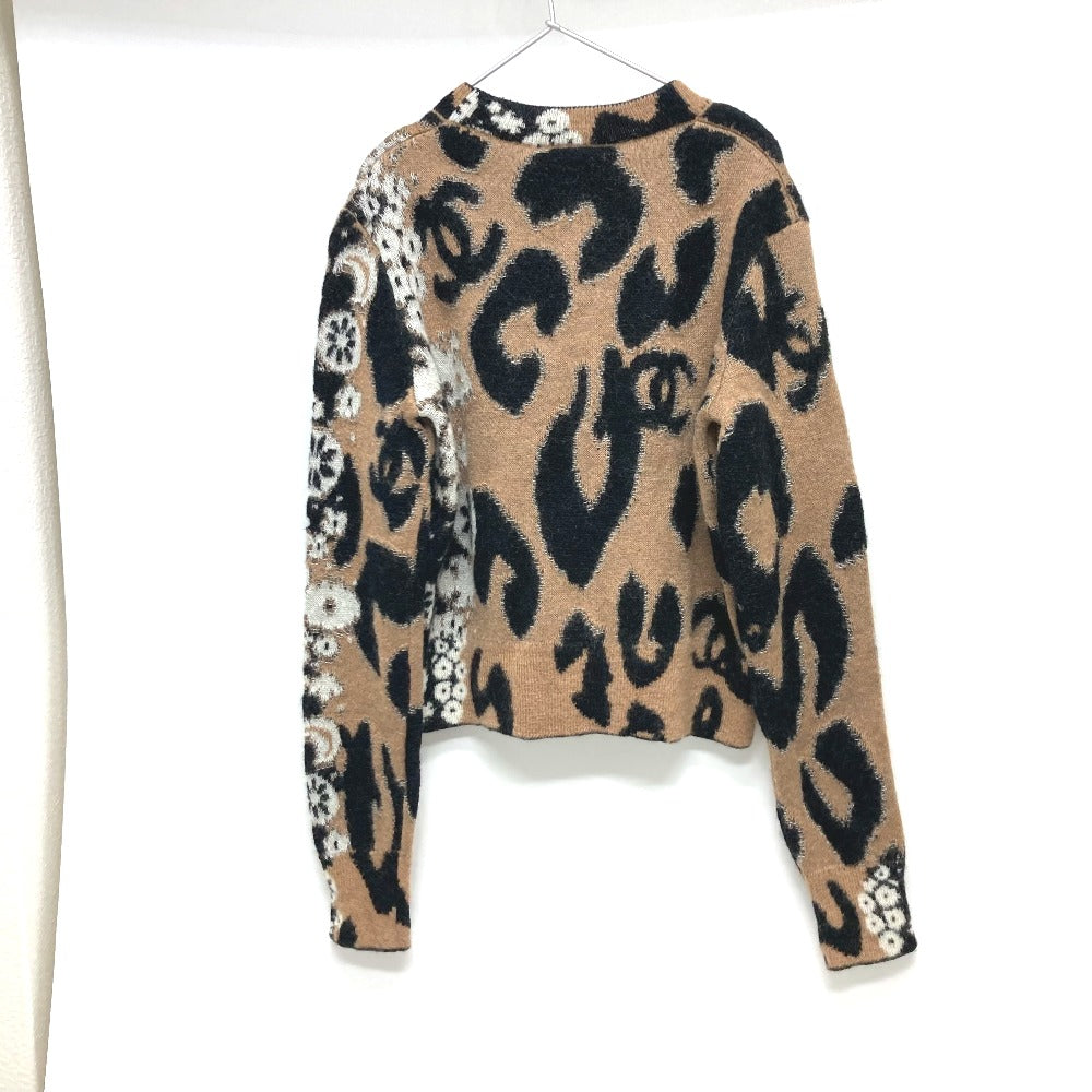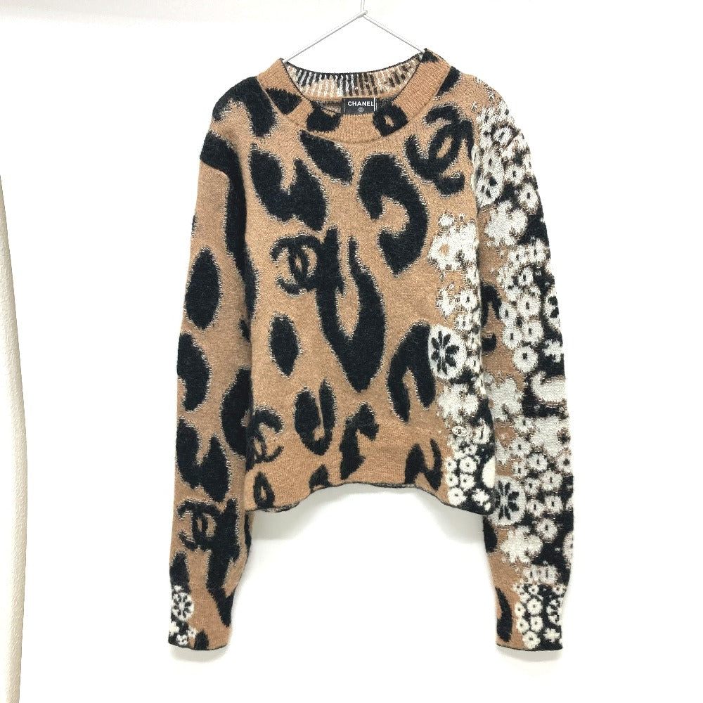 CHANEL P75361 23A ココマーク レオパード 豹 ヒョウ柄 ニット セーター 長袖 アパレル セーター カシミヤ レディース ブラウン