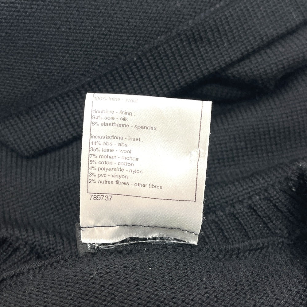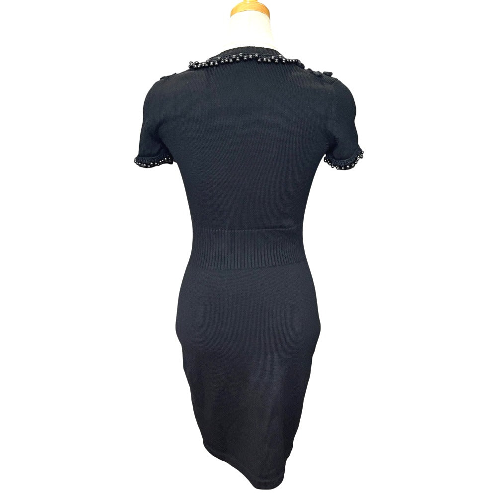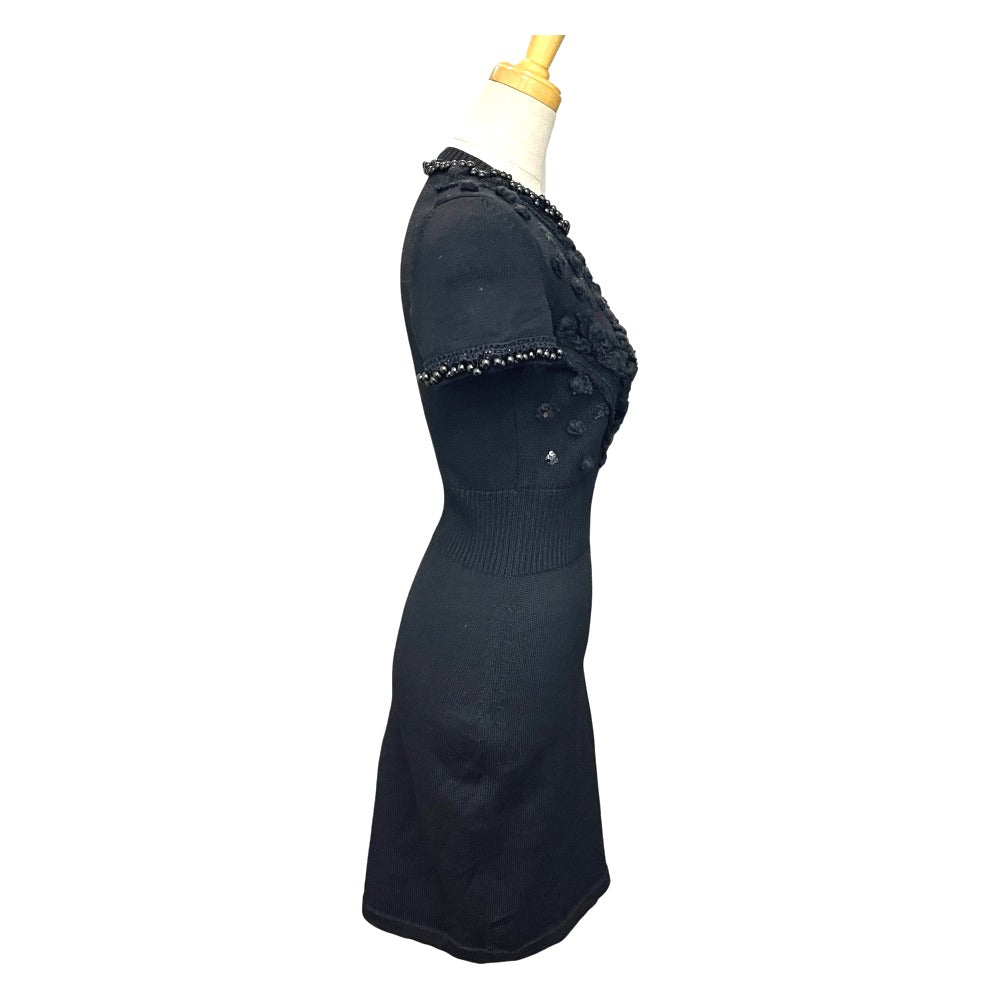CHANEL P36973 ビジュー装飾 ショートスリーブ ニットワンピ クルーネック ひざ丈 ワンピース ウール レディース ブラック