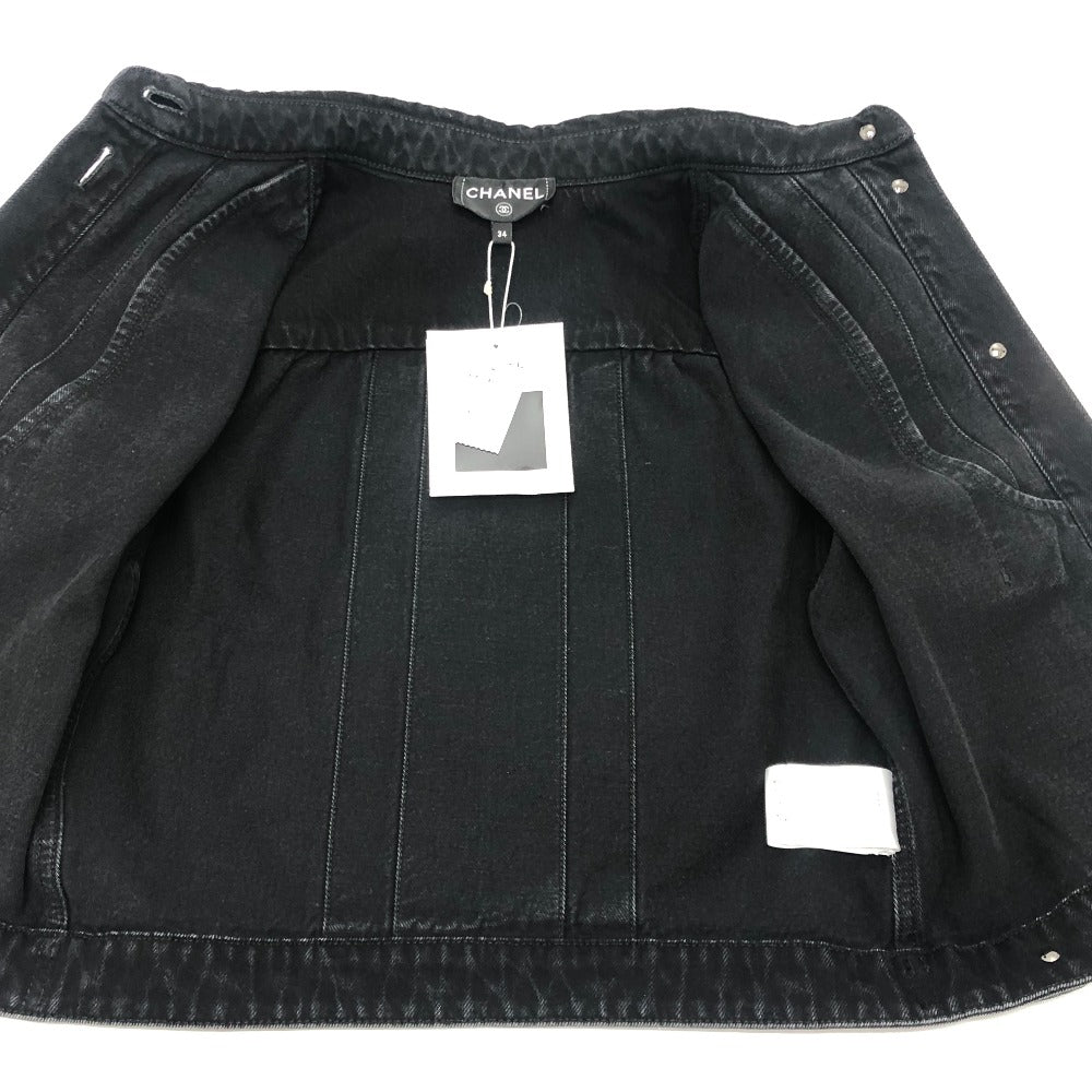 CHANEL P77615 24AW ビジュー グリポアボタン ウォッシュドデニム フリル アパレル ベスト ジャケット デニム レディース ブラック