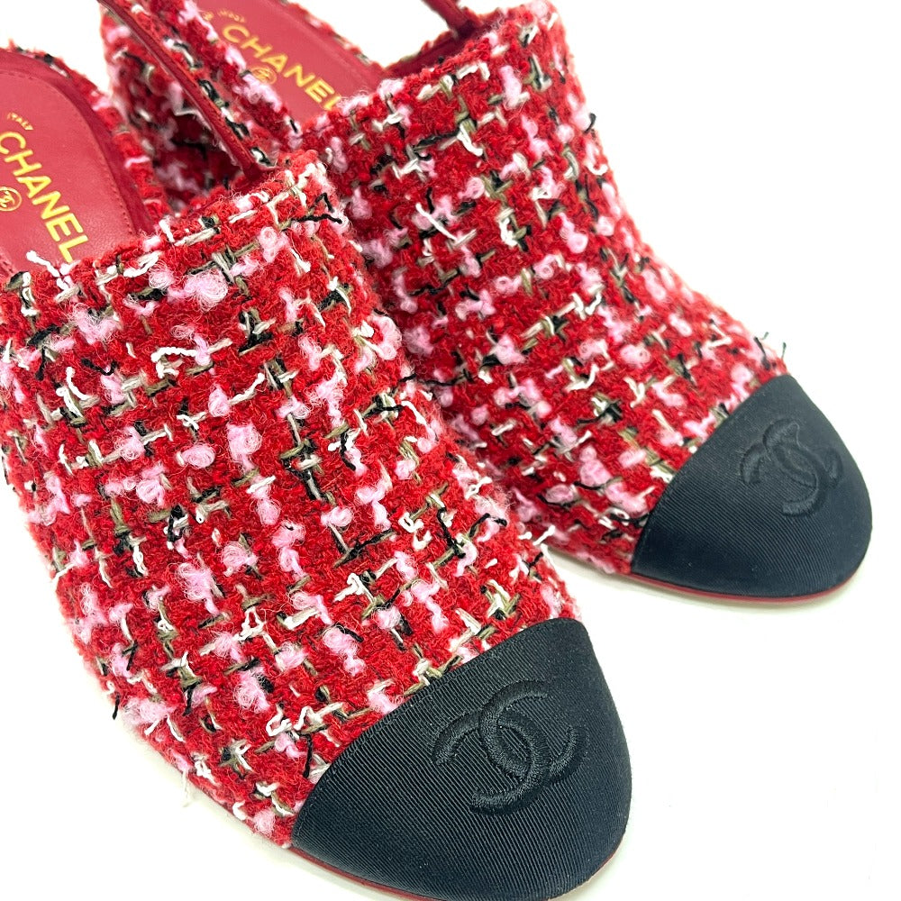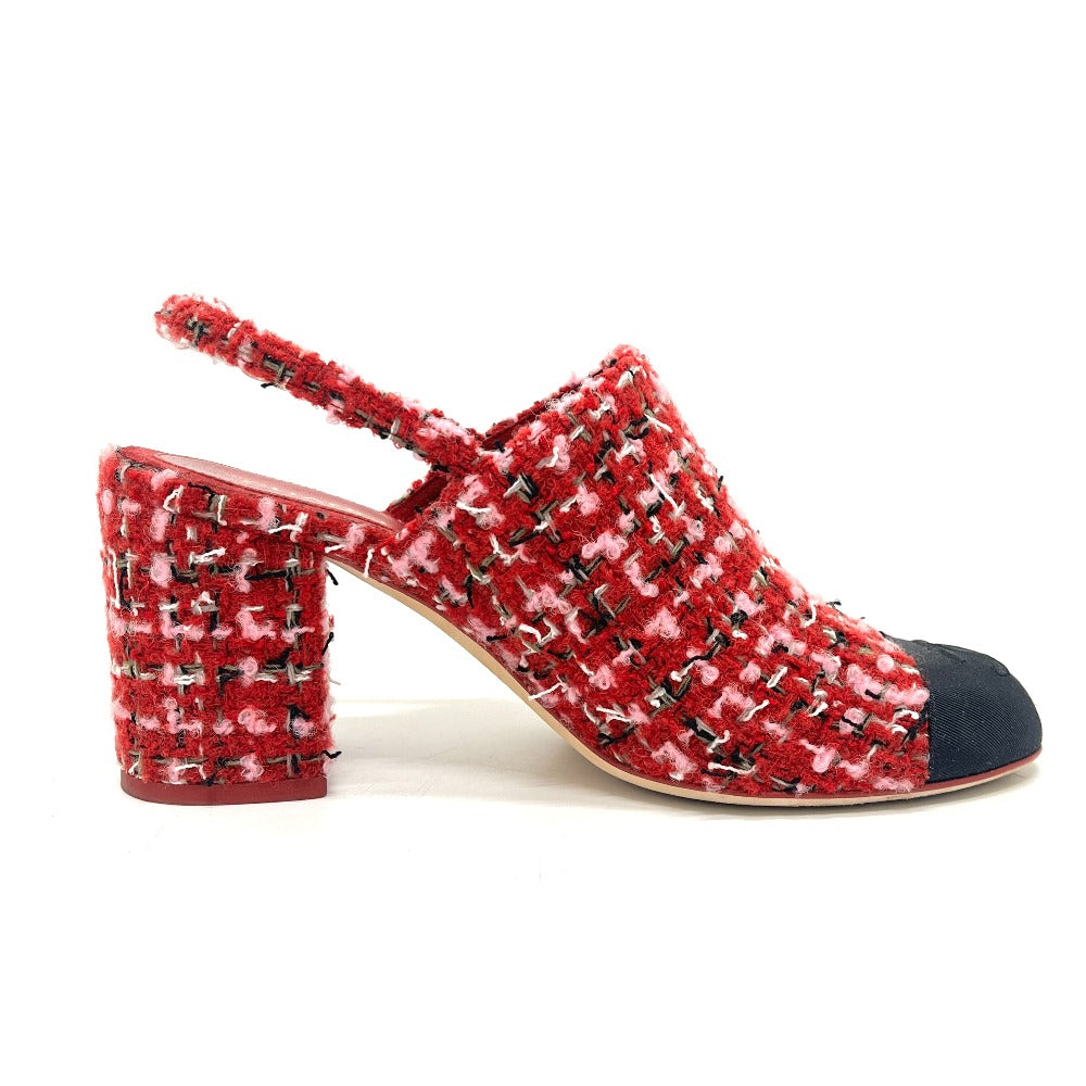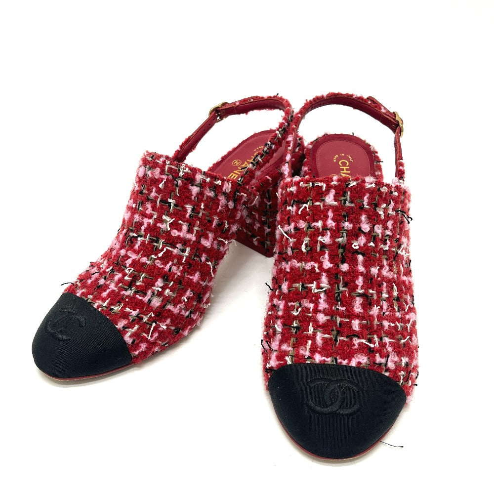 CHANEL G46865 2025/26年秋冬 ココマーク スリングバック シューズ ツイード パンプス サンダル ツイード レディース レッド