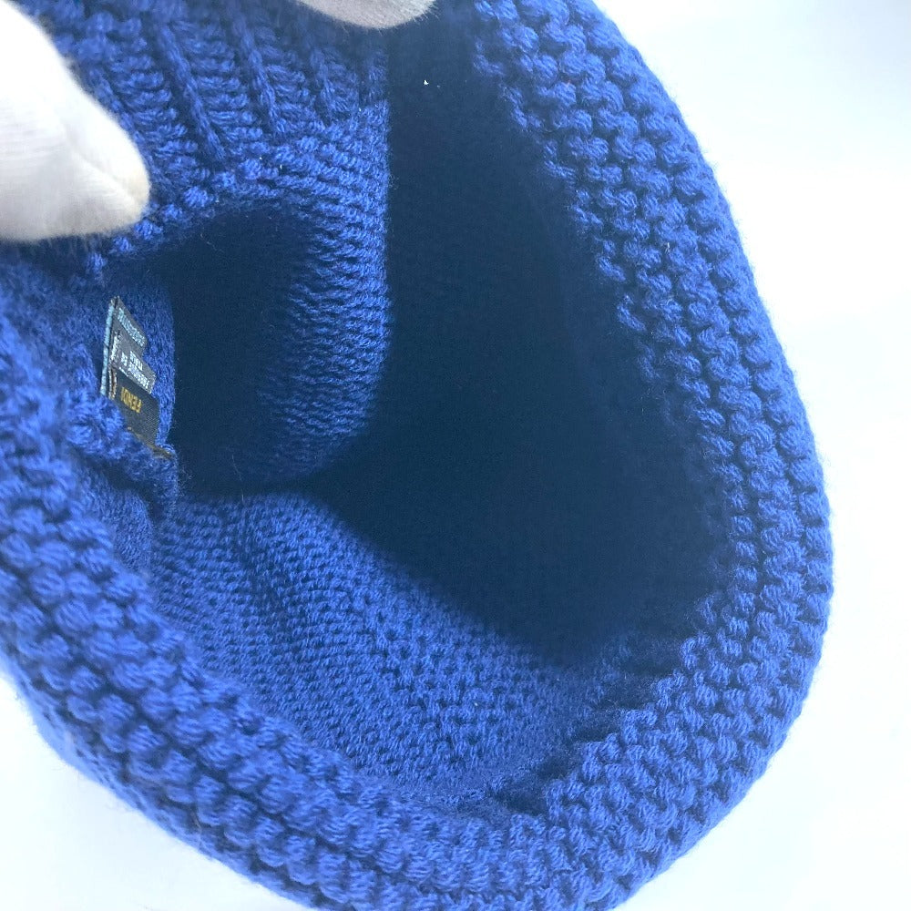 FENDI ロゴ FF ビーニー 帽子 ニット帽 ニットキャップ ニット帽 ウール ユニセックス ブルー