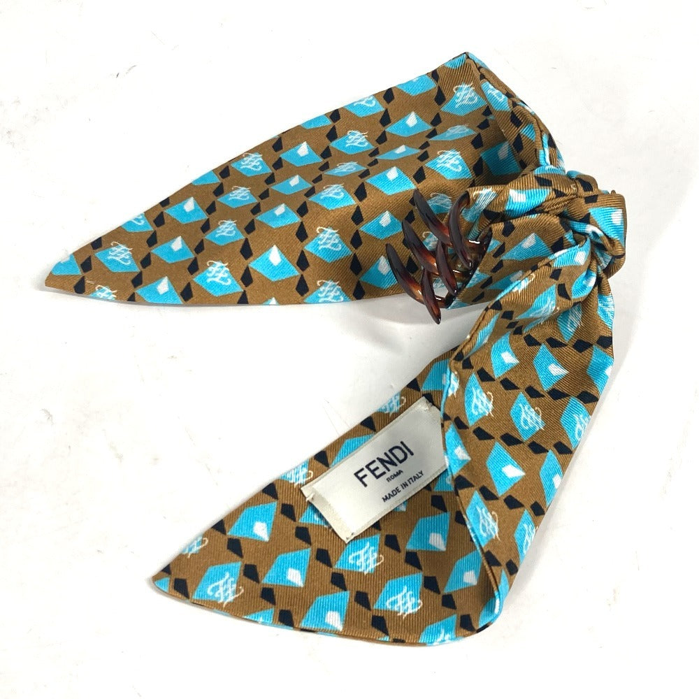 FENDI ロゴ ヘアクリップ ヘアアクセサリー バレッタ シルク レディース ブラウン