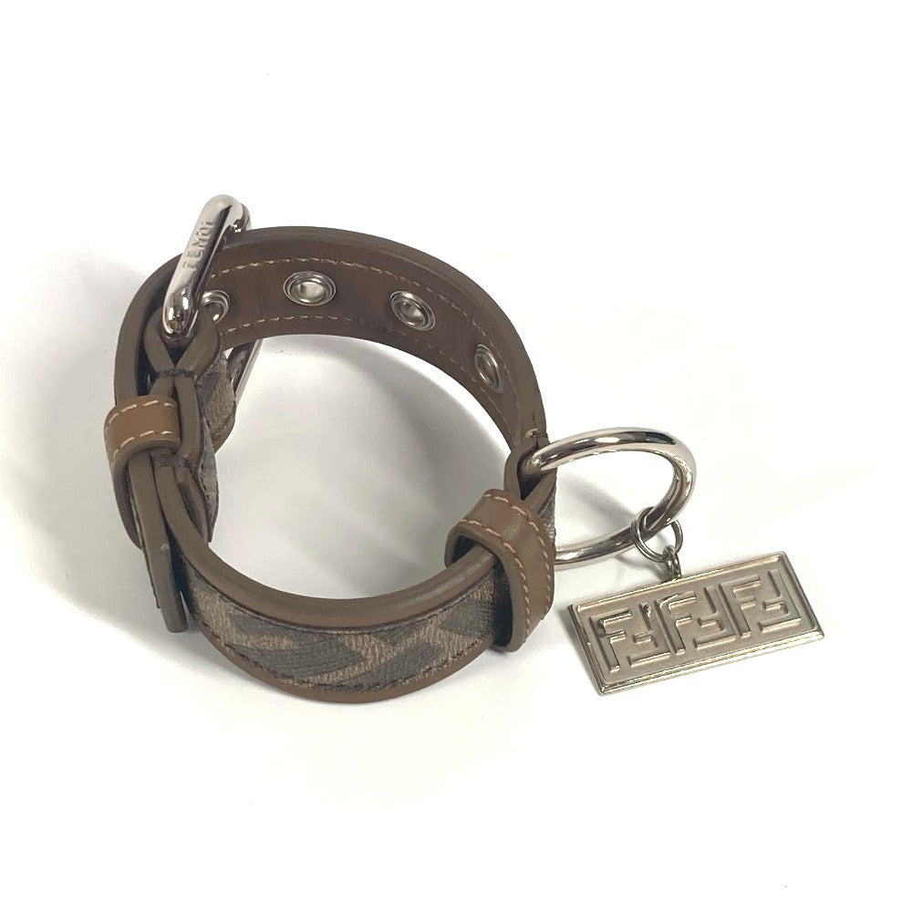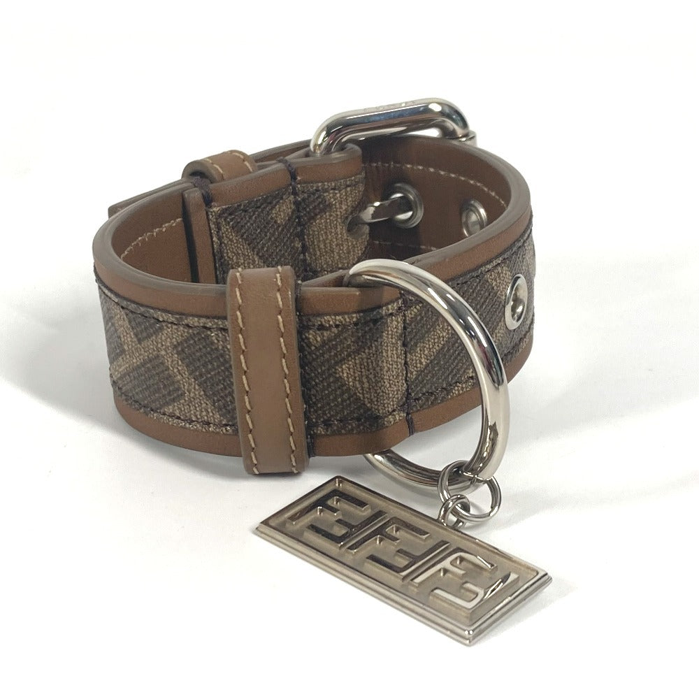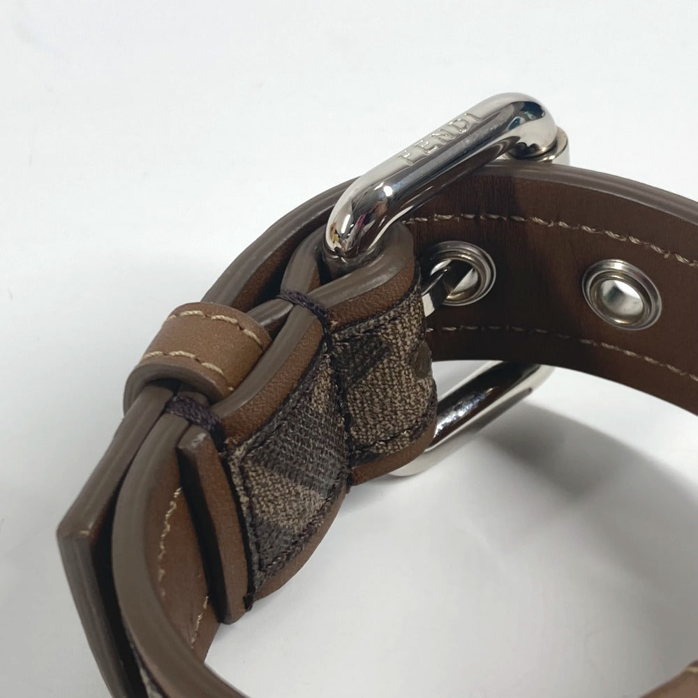 FENDI 8AC016 ズッカ ドッグカラー ペット わんちゃん 犬 猫 キャット ペットカラー 首輪 レザー ユニセックス ブラウン