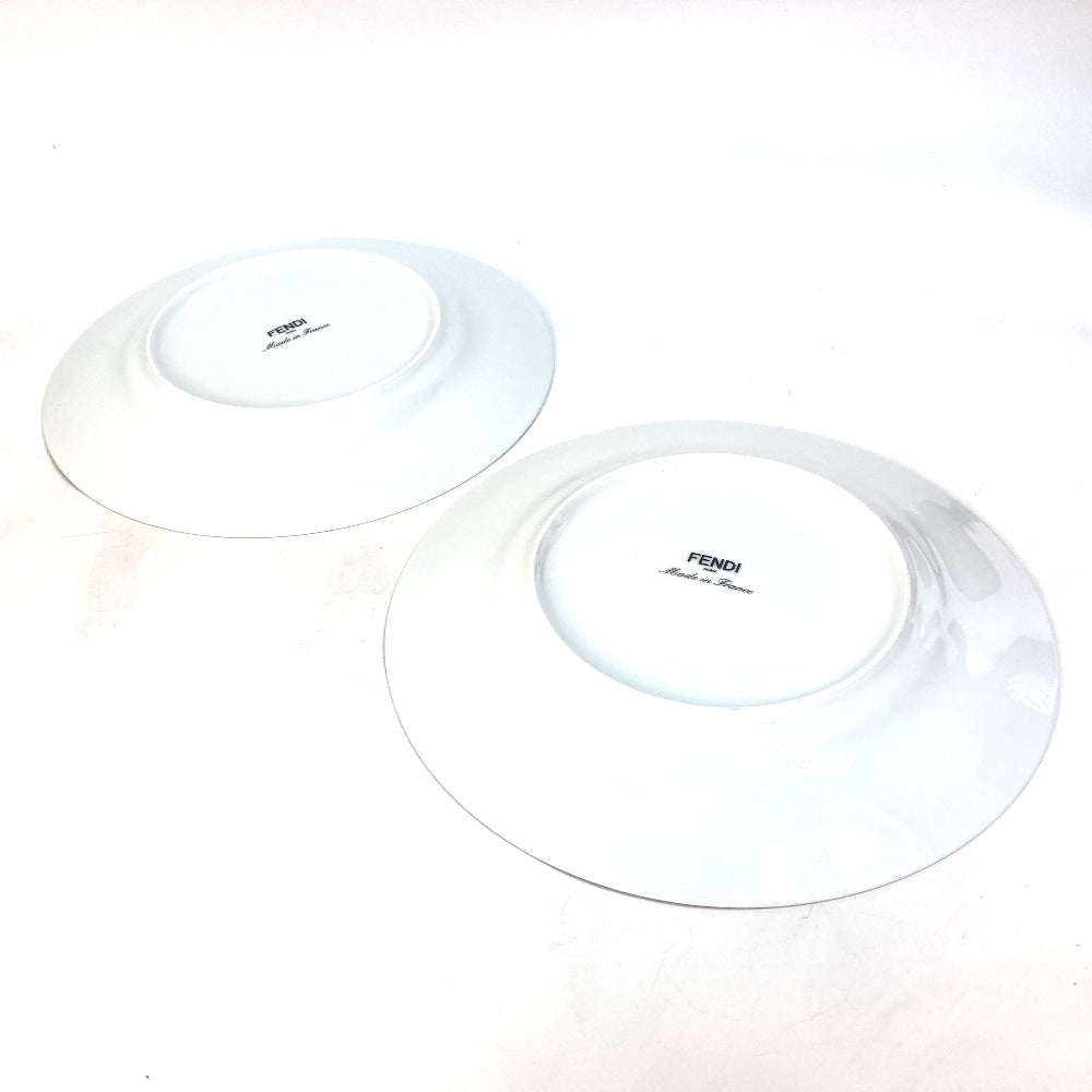 FENDI 7AC045 ホワイト磁器 食器 インテリア 2枚セット ペア オーロック プレート 2点セット ディナープレート お皿 ポーセリン レディース