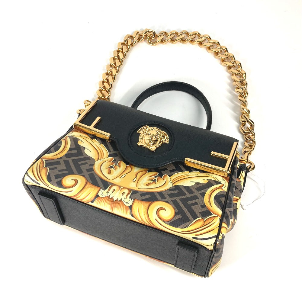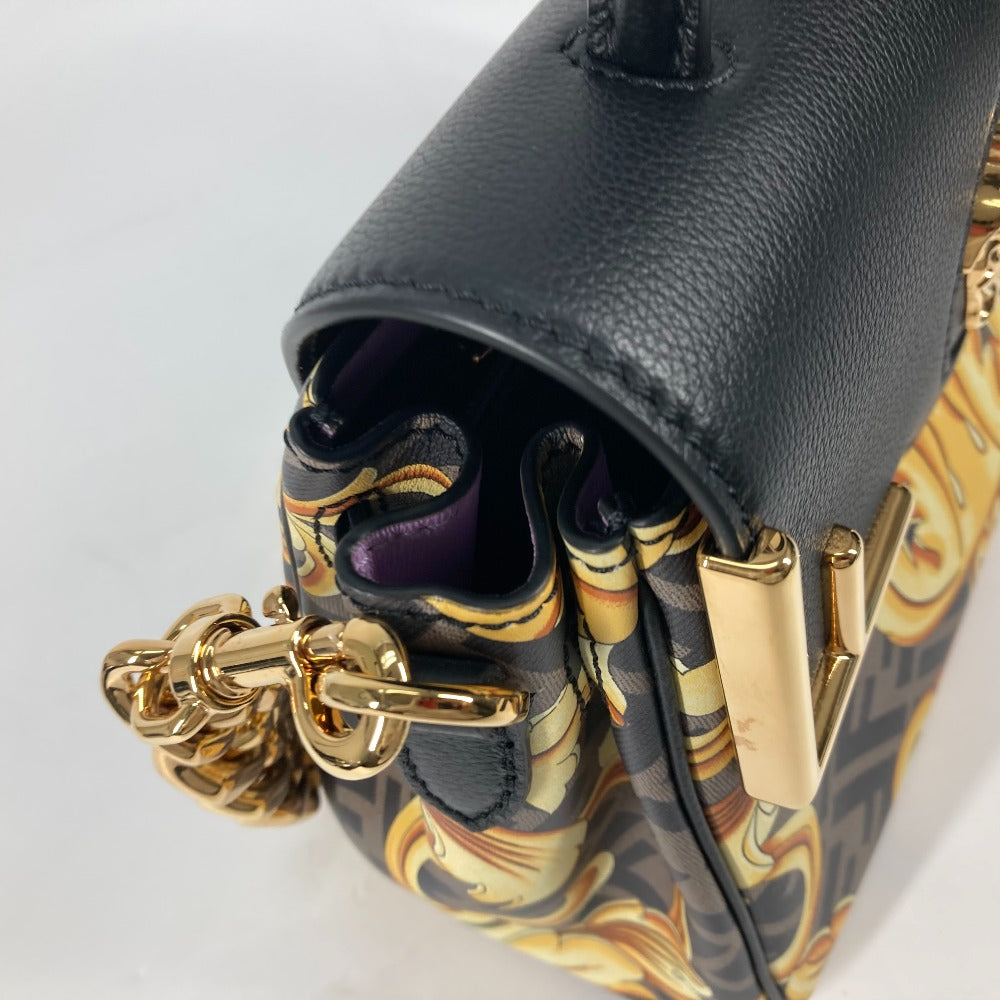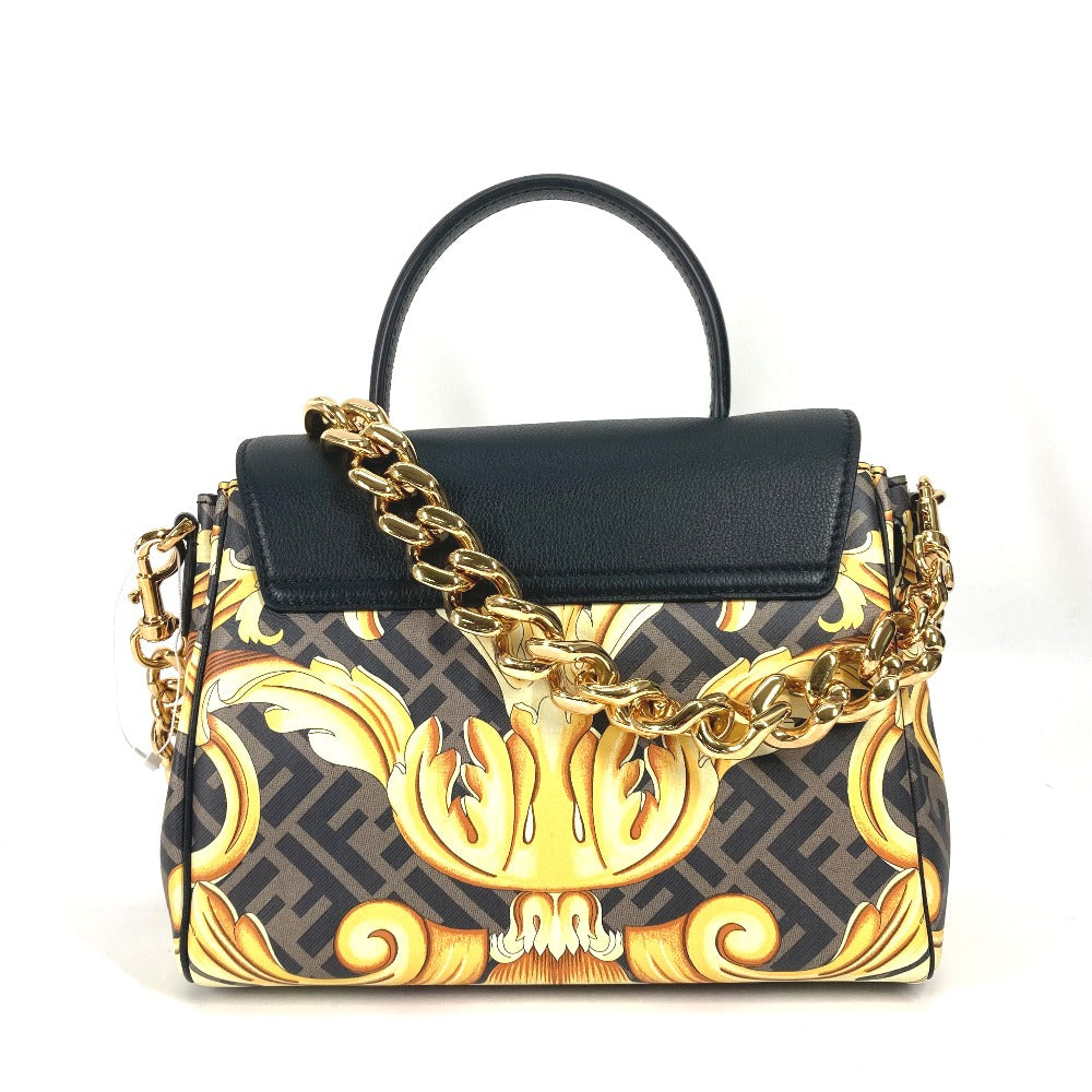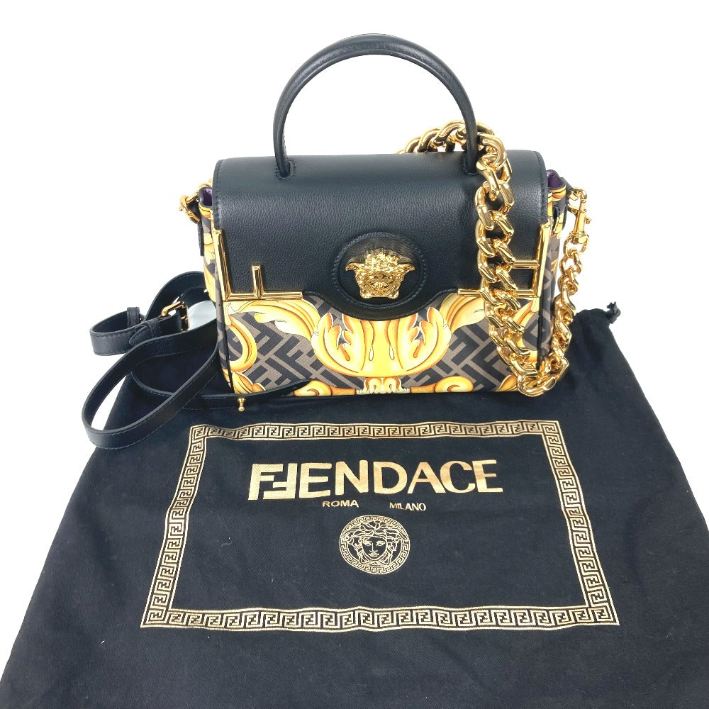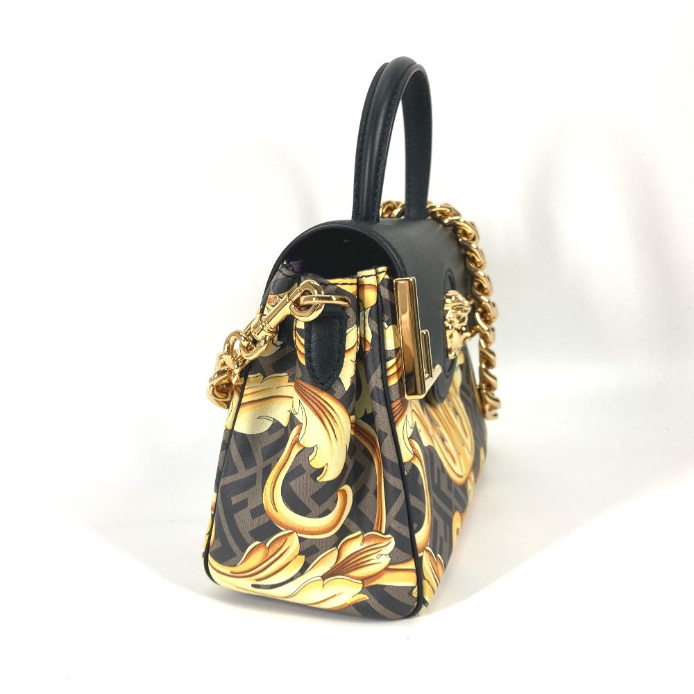 FENDI ヴェルサーチ コラボ VERSACE ラ メドゥーサ サッチェルバッグ ズッカ FENDACE フェンダーチェ 2WAY ショルダーバッグ 斜め掛け ハンドバッグ PVC/レザー レディース ブラウン