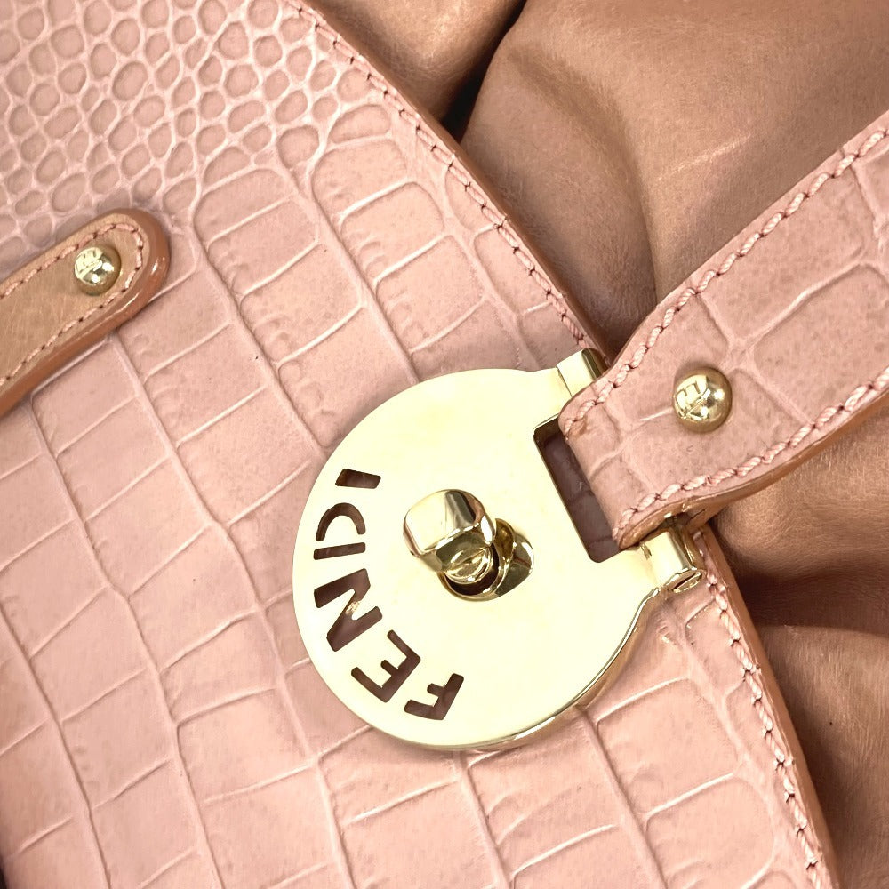 FENDI ターンロック 肩掛け ハンドバッグ カバン トートバッグ レザー レディース ピンク