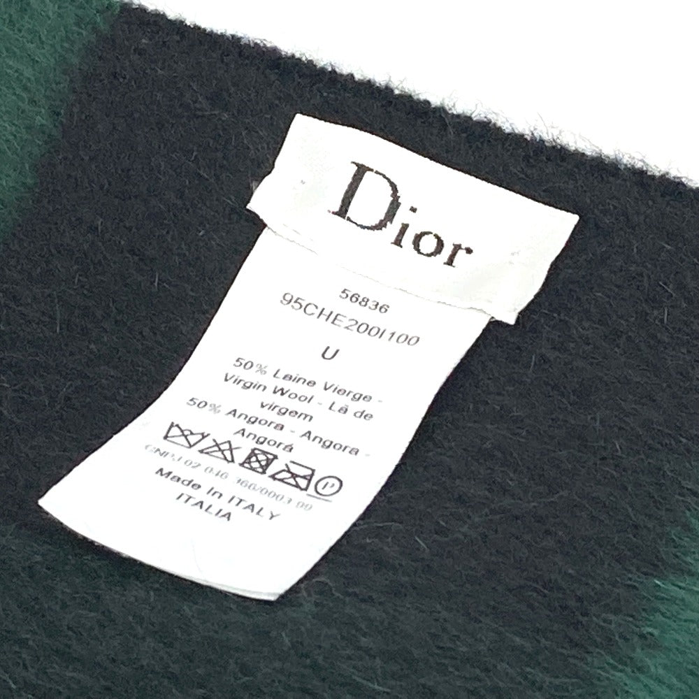 Dior 95CHE200100 ロゴ フリンジ チェック柄 大判ショール マフラー ウール レディース