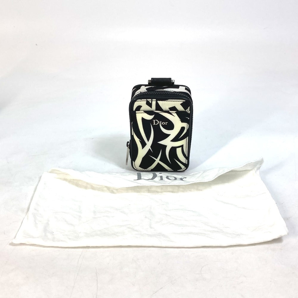 DIOR HOMME Cigarette Case with Key Ring, Tribal Two-Tone Nylon Pouch, White, Men's