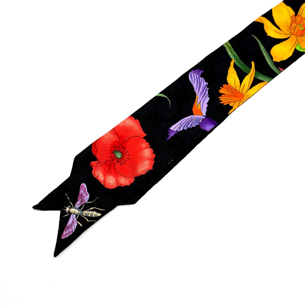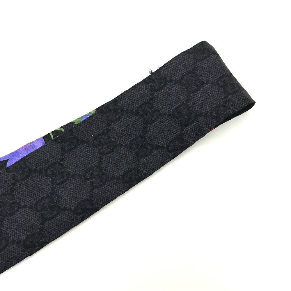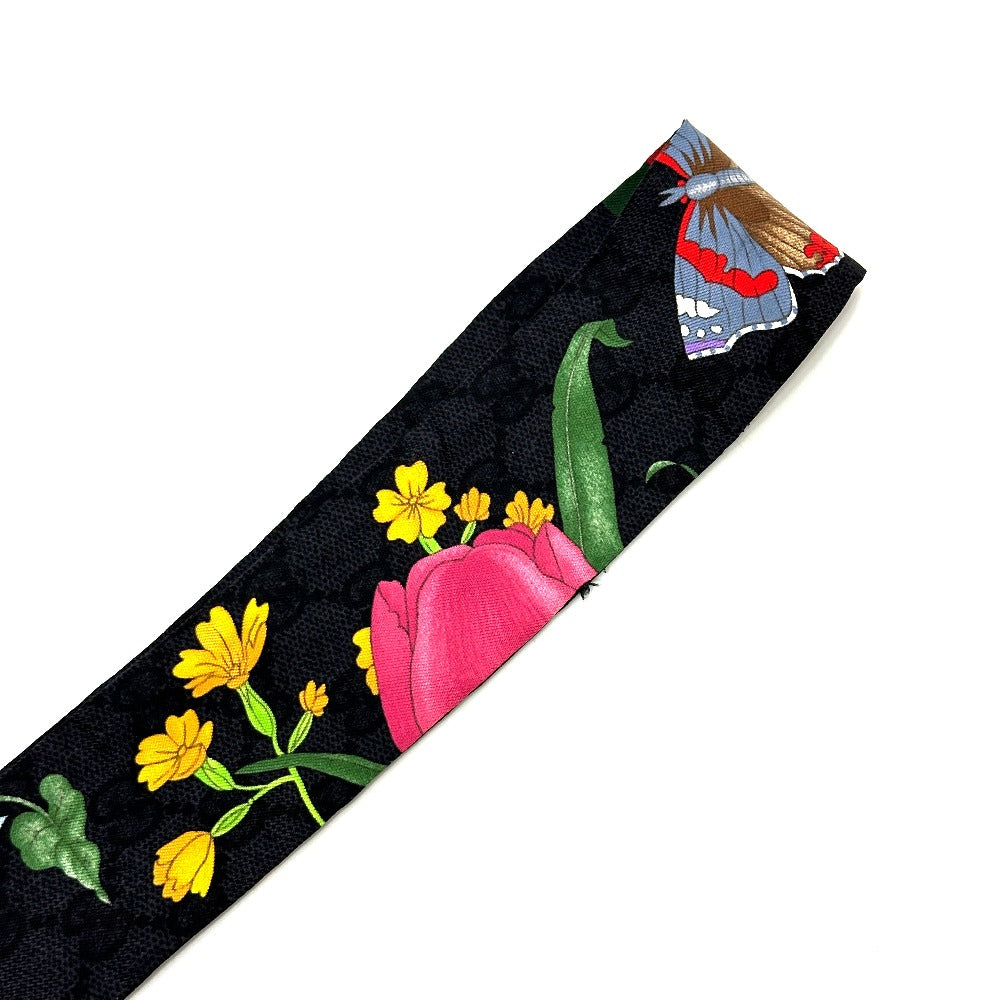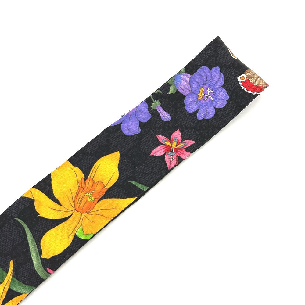 GUCCI 761704 GGフローラ プリント ネックボウ スカーフ シルク レディース ブラック