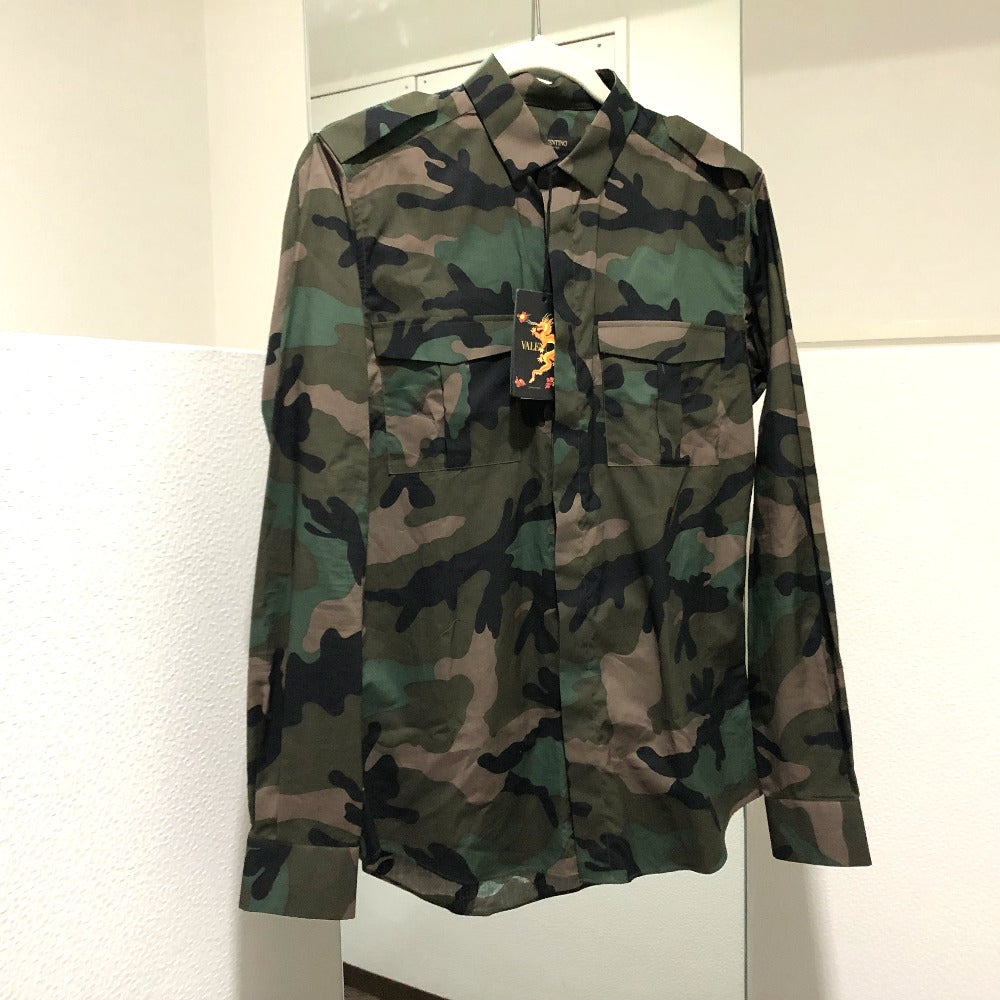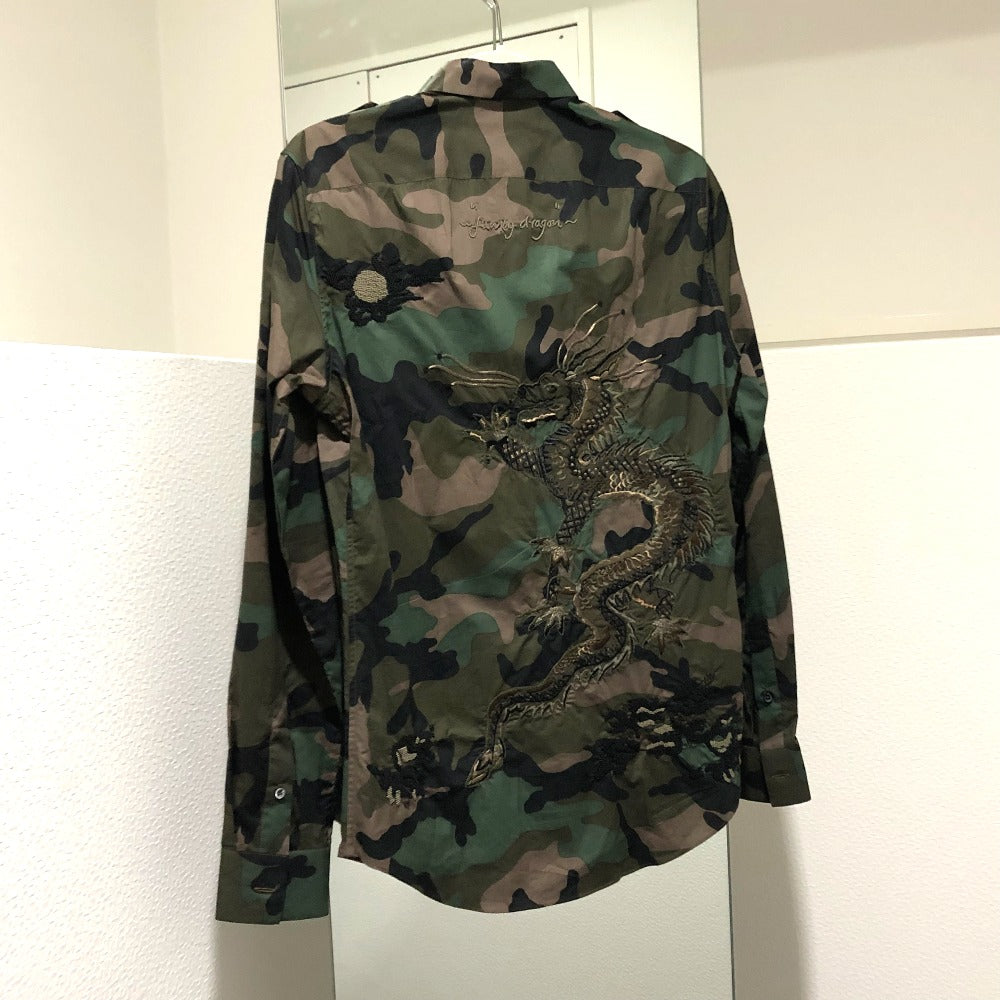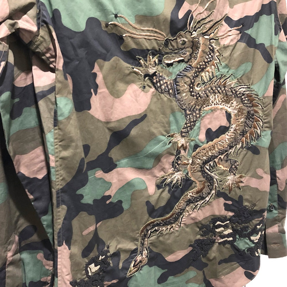 VALENTINO シャツ 迷彩 ドラゴン刺繍 コットン メンズ 長袖シャツ