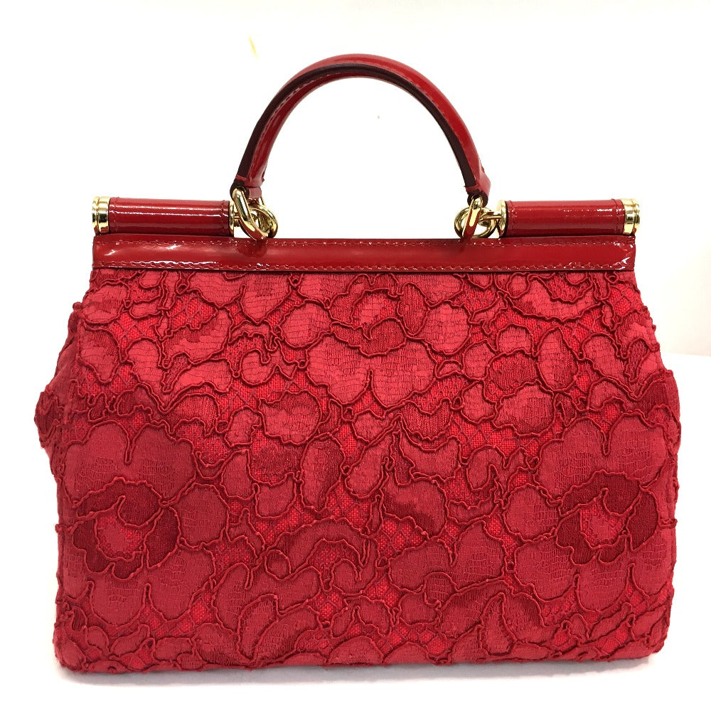 DOLCE&GABBANA シシリー ロゴプレート フラワー柄 刺繍 カバン ハンドバッグ 2WAY ショルダーバッグ コットン レディース