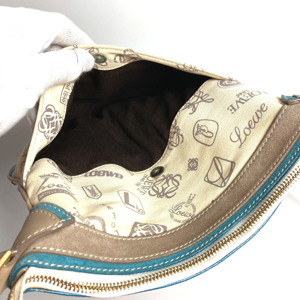 LOEWE 160周年記念 ロゴ 斜め掛け カバン ショルダーバッグ レザー/キャンバス ユニセックス ベージュ
