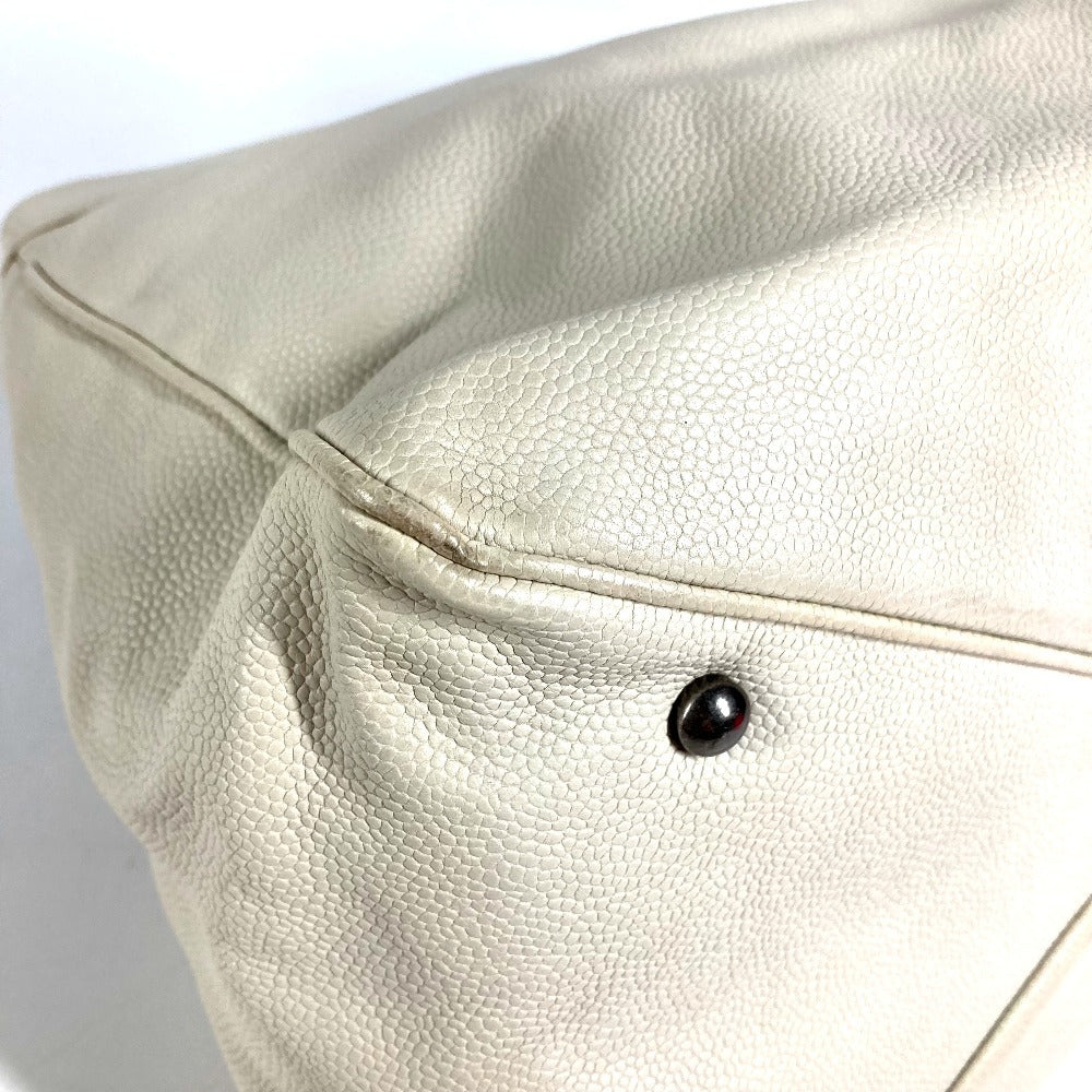 CHANEL CC Coco Mark Logo Shoulder Tote Bag with Double Chain, Caviar Leather, White