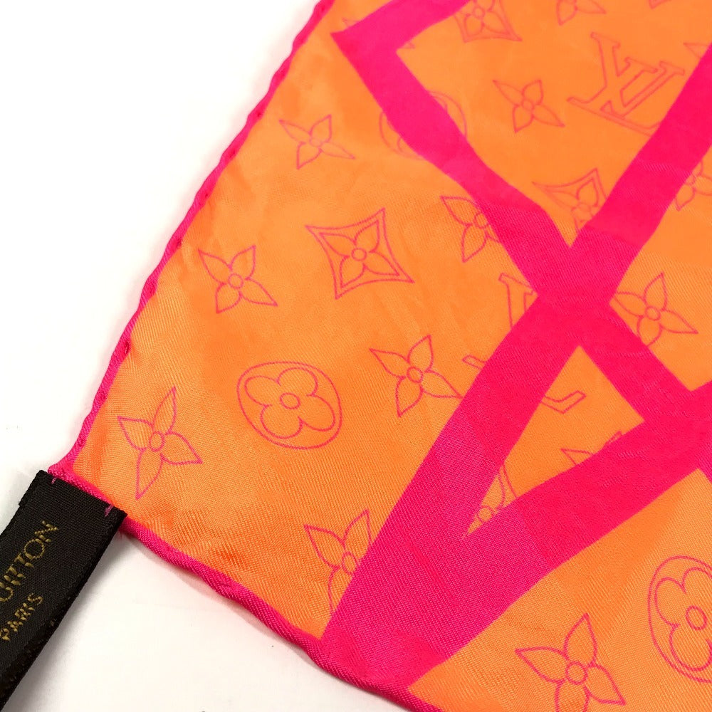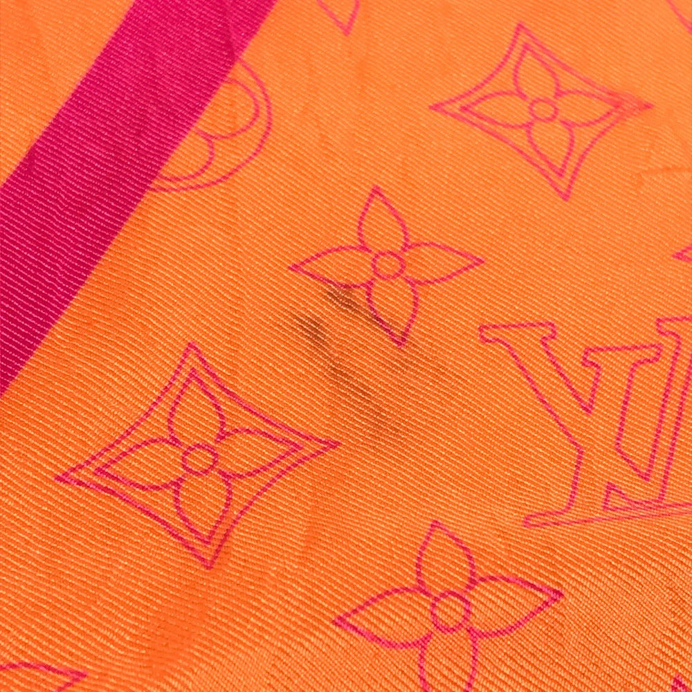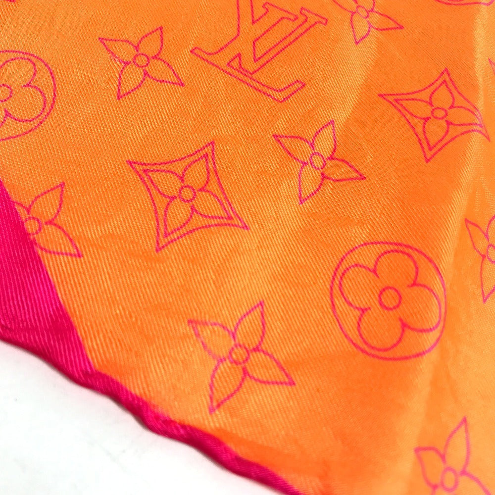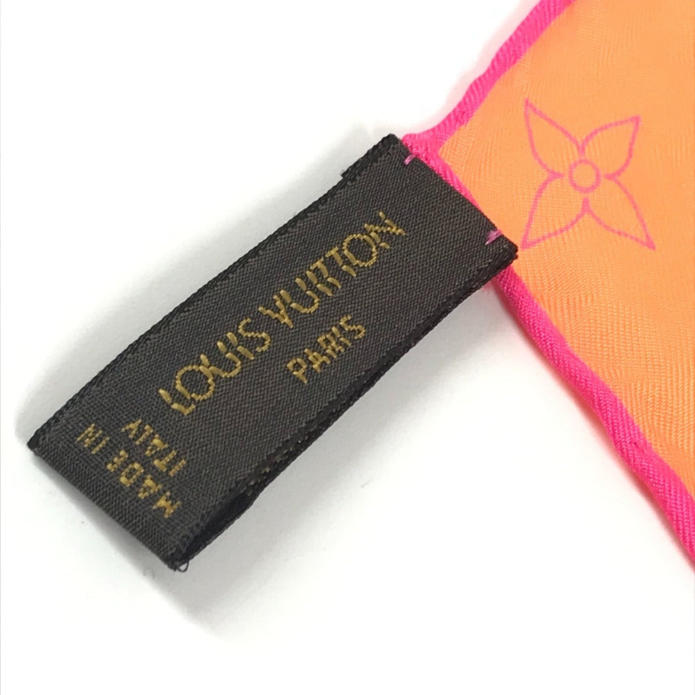 LOUIS VUITTON モノグラム ロゴ ネオンカラー スカーフ シルク ユニセックス オレンジ
