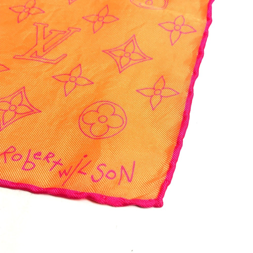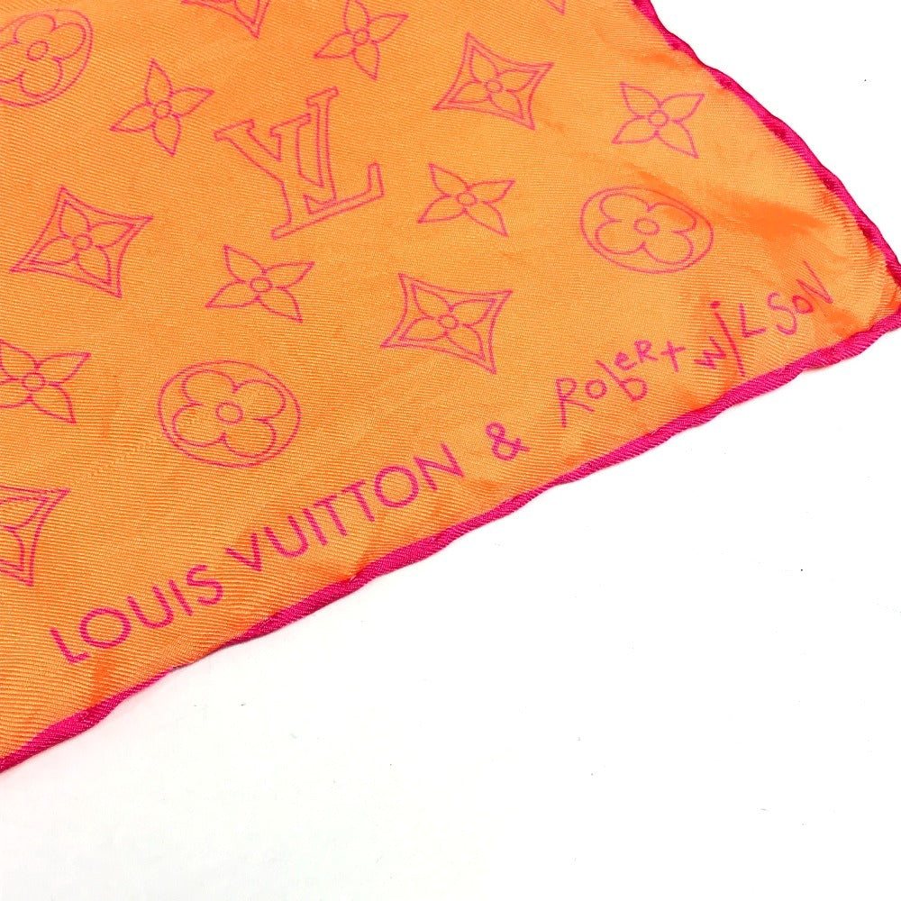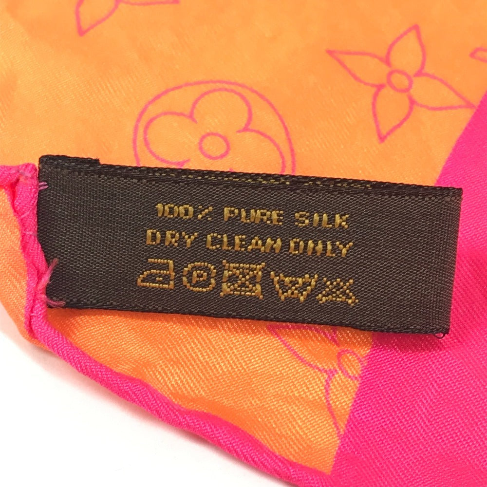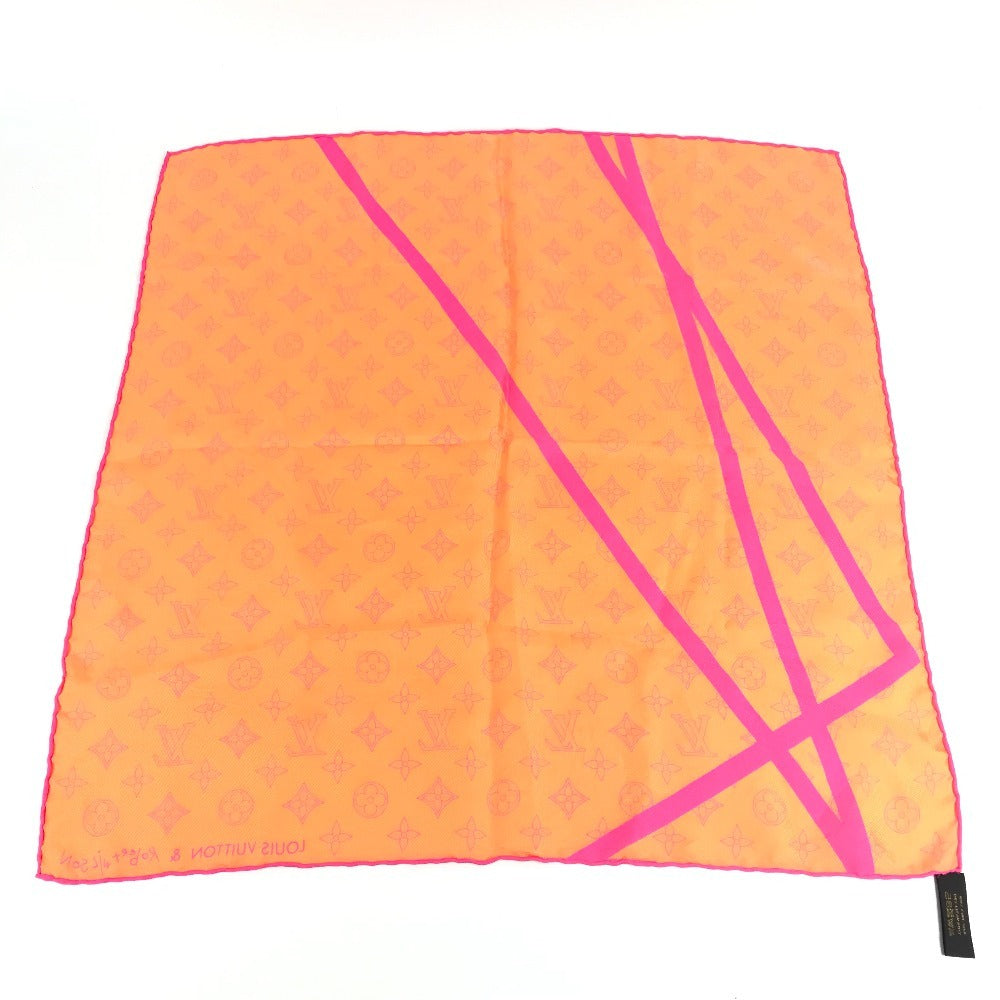 LOUIS VUITTON モノグラム ロゴ ネオンカラー スカーフ シルク ユニセックス オレンジ