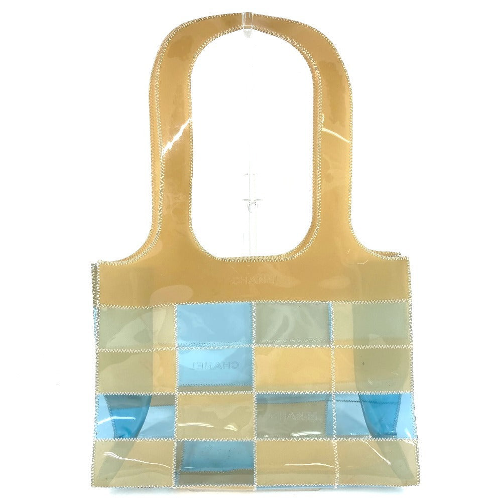 CHANEL CC ココマーク ロゴ パッチワーク カバン トートバッグ 肩掛け ショルダーバッグ ビニール ユニセックス ベージュ