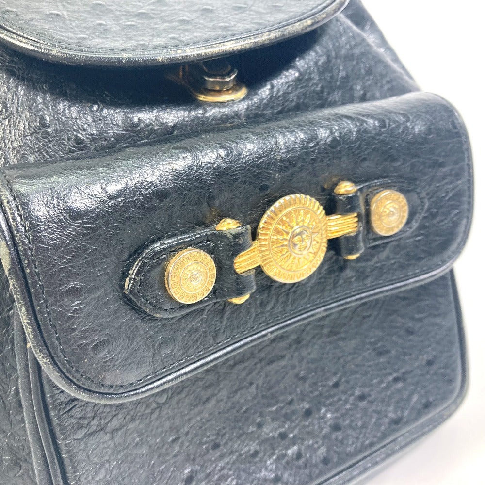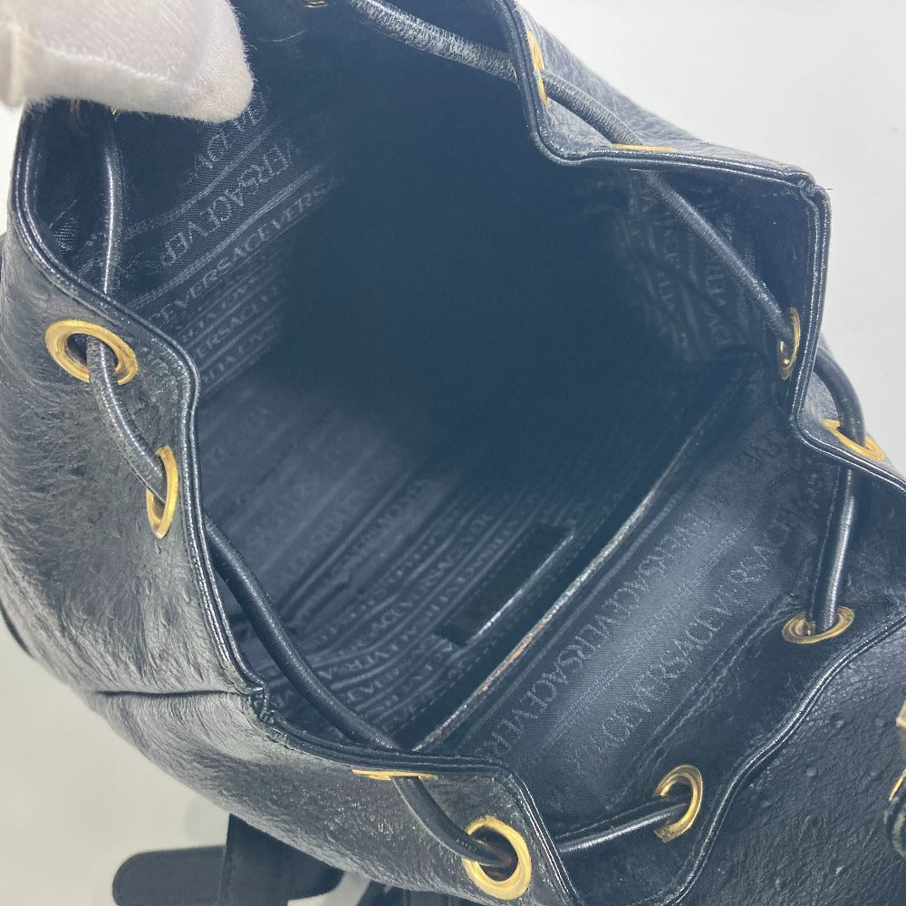 VERSACE サンバースト バックパック カバン ヴィンテージ リュックサック レザー レディース ブラック