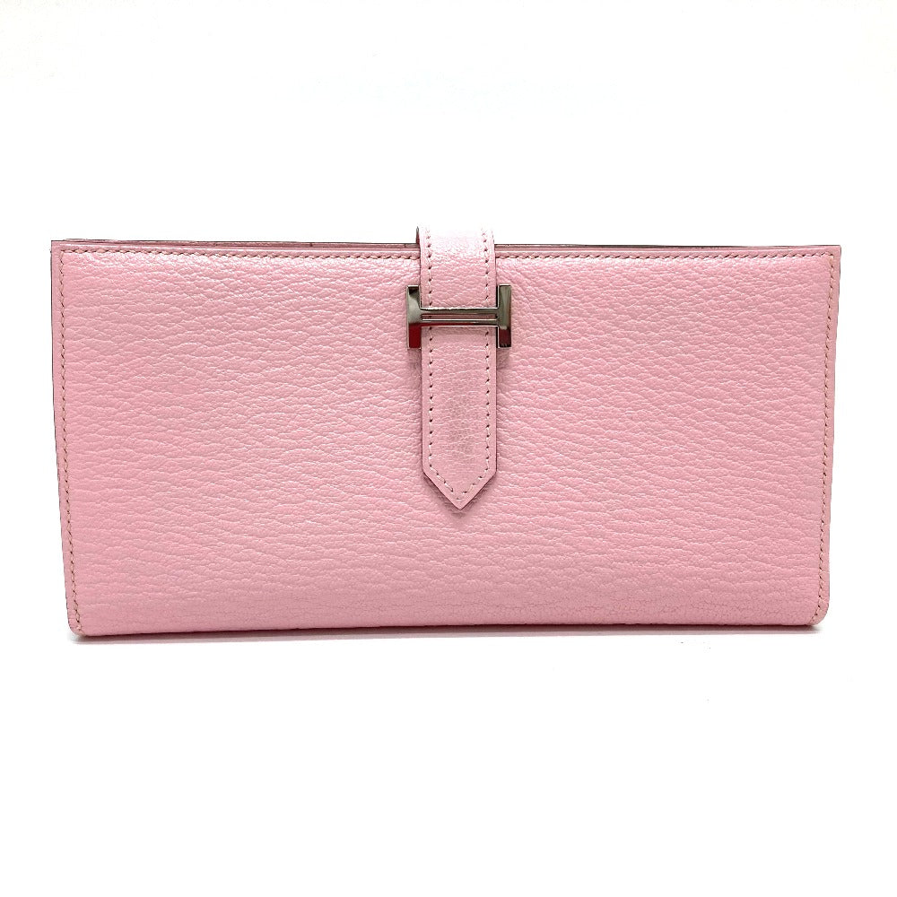 HERMES H金具 ベアンスフレ マチ有 長財布 長財布 シェブルミゾル レディース ローズサクラ ピンク
