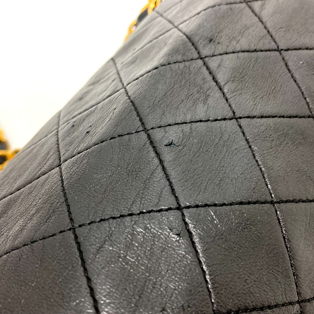 CHANEL CCココマーク マトラッセ 筒型 カバン チェーン 肩掛け ショルダーバッグ ラムスキン レディース ブラック
