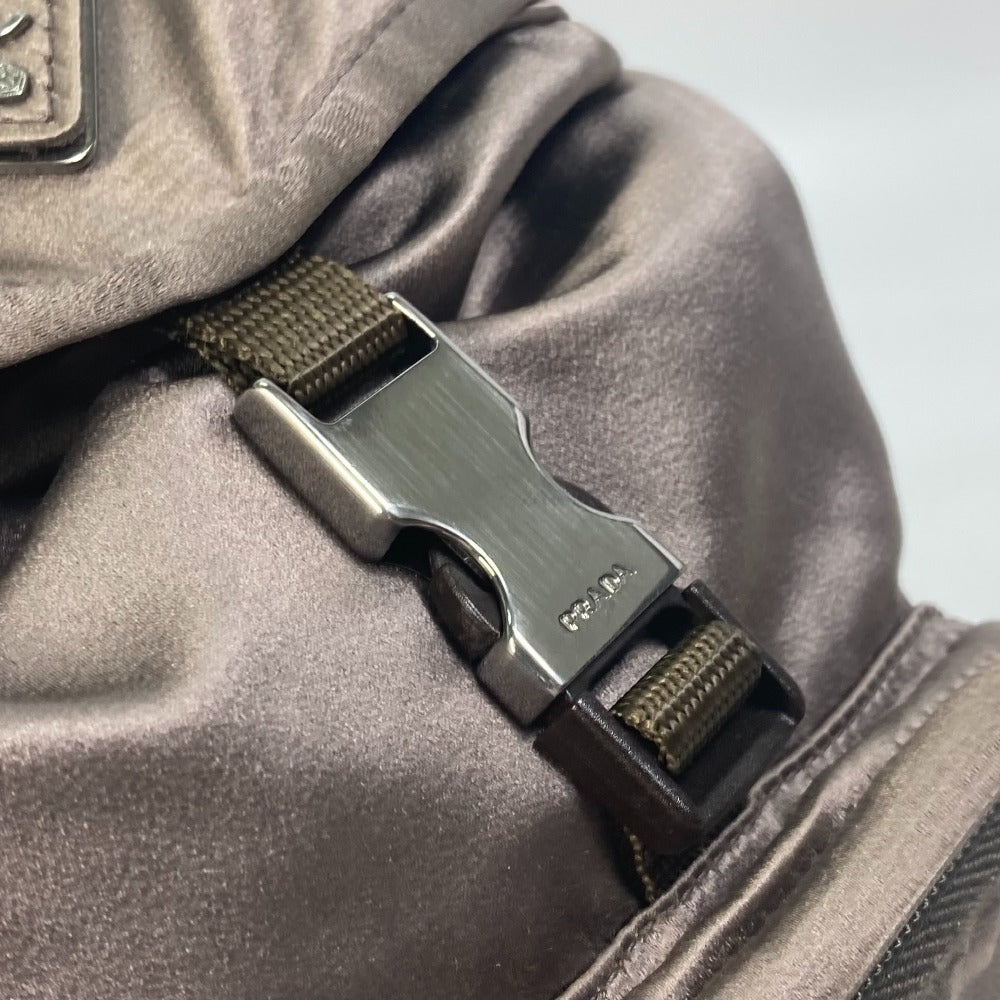 PRADA ロゴプレート トライアングルロゴ 三角ロゴ プレート バックパック カバン リュックサック サテン レディース